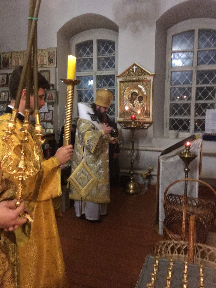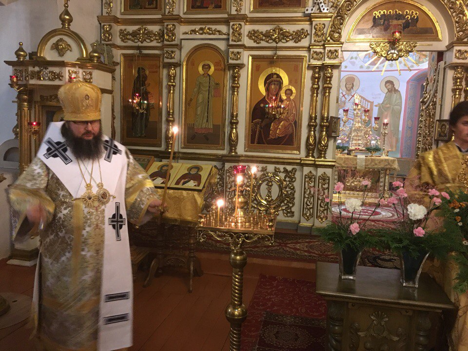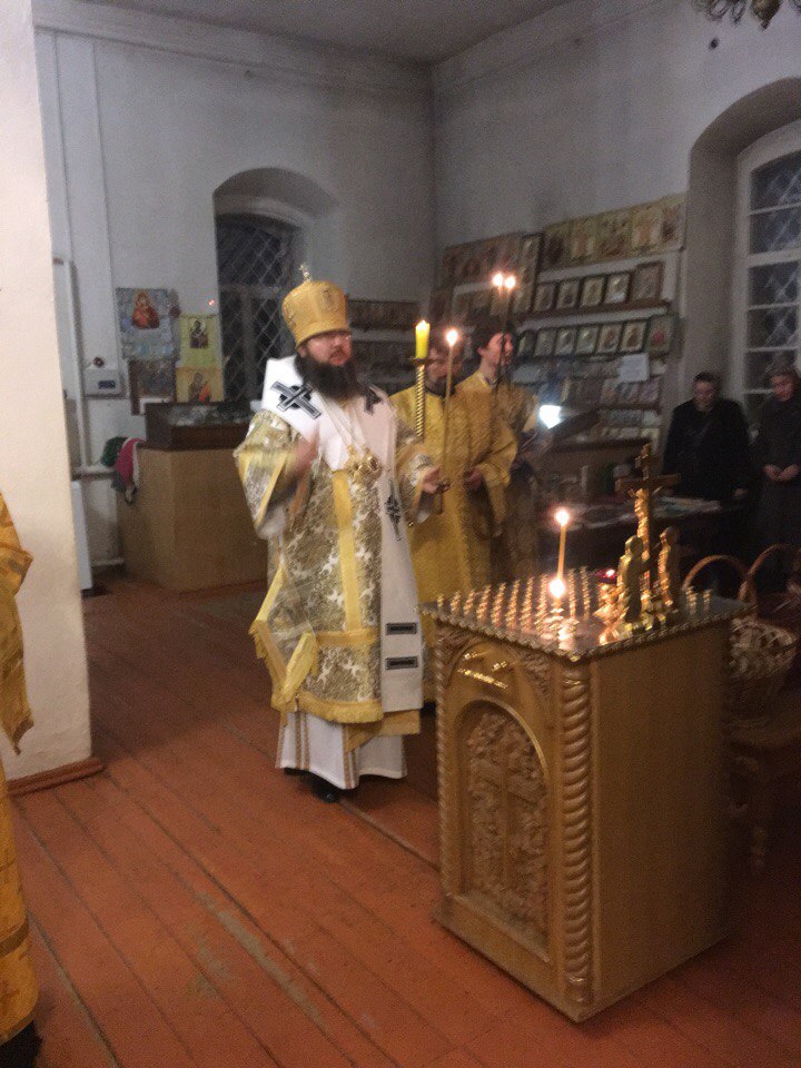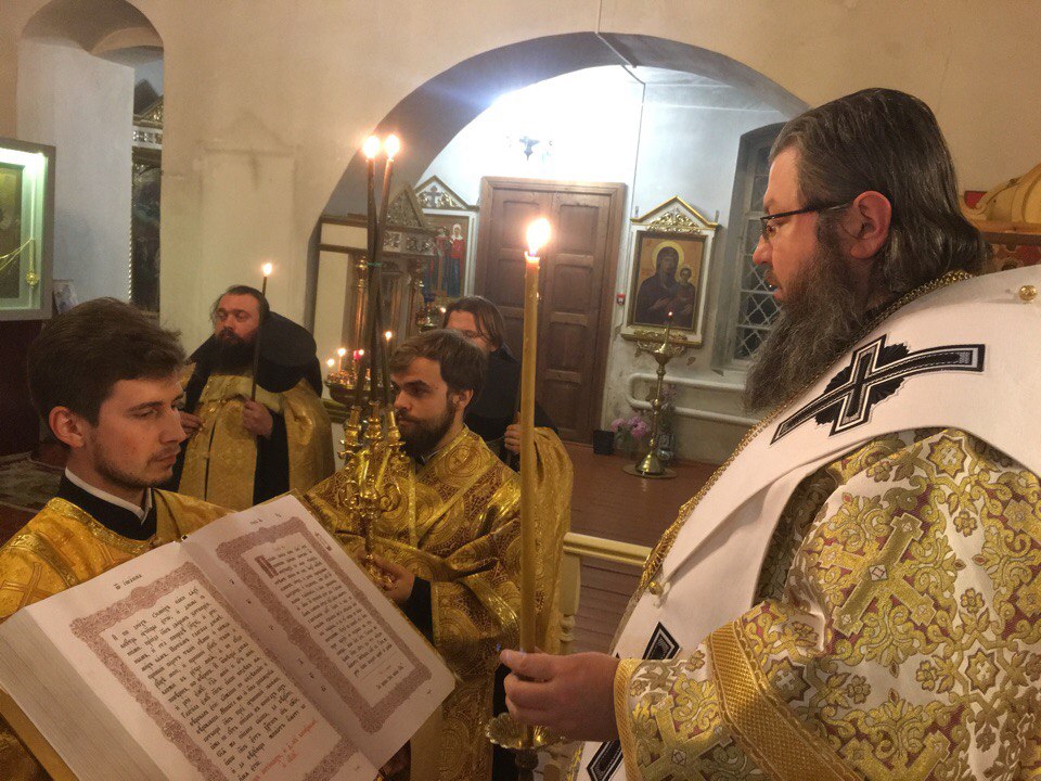 Его Преосвященству сослужили братия монастыря в священном сане, клирики Рославльской епархии.