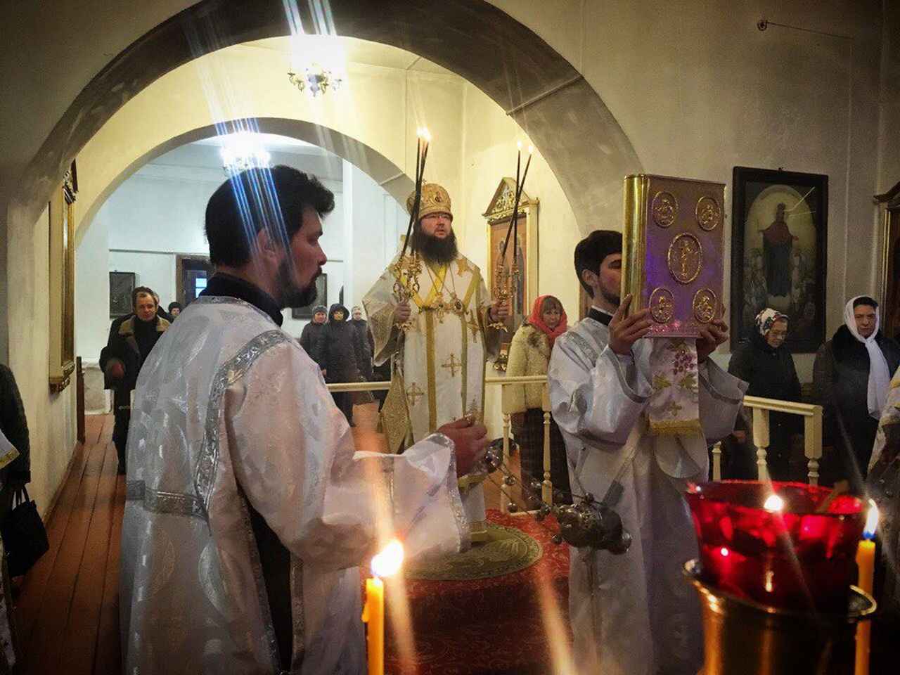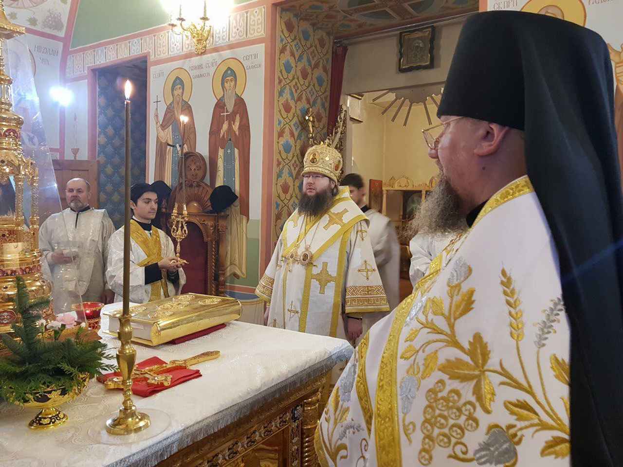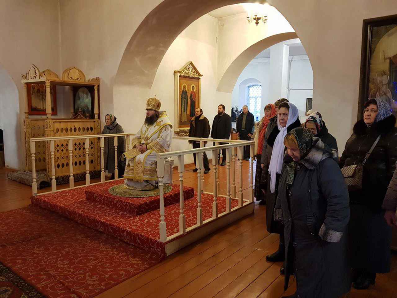Его Преосвященству сослужили братия монастыря в священном сане, клирики Рославльской епархии.