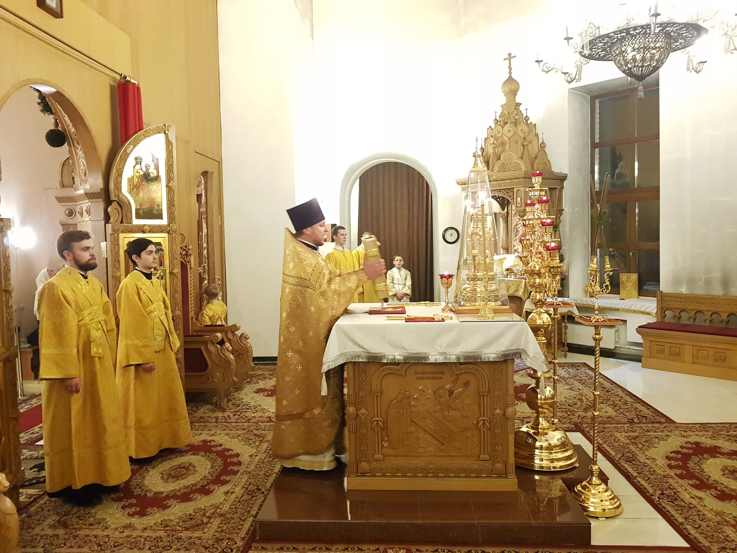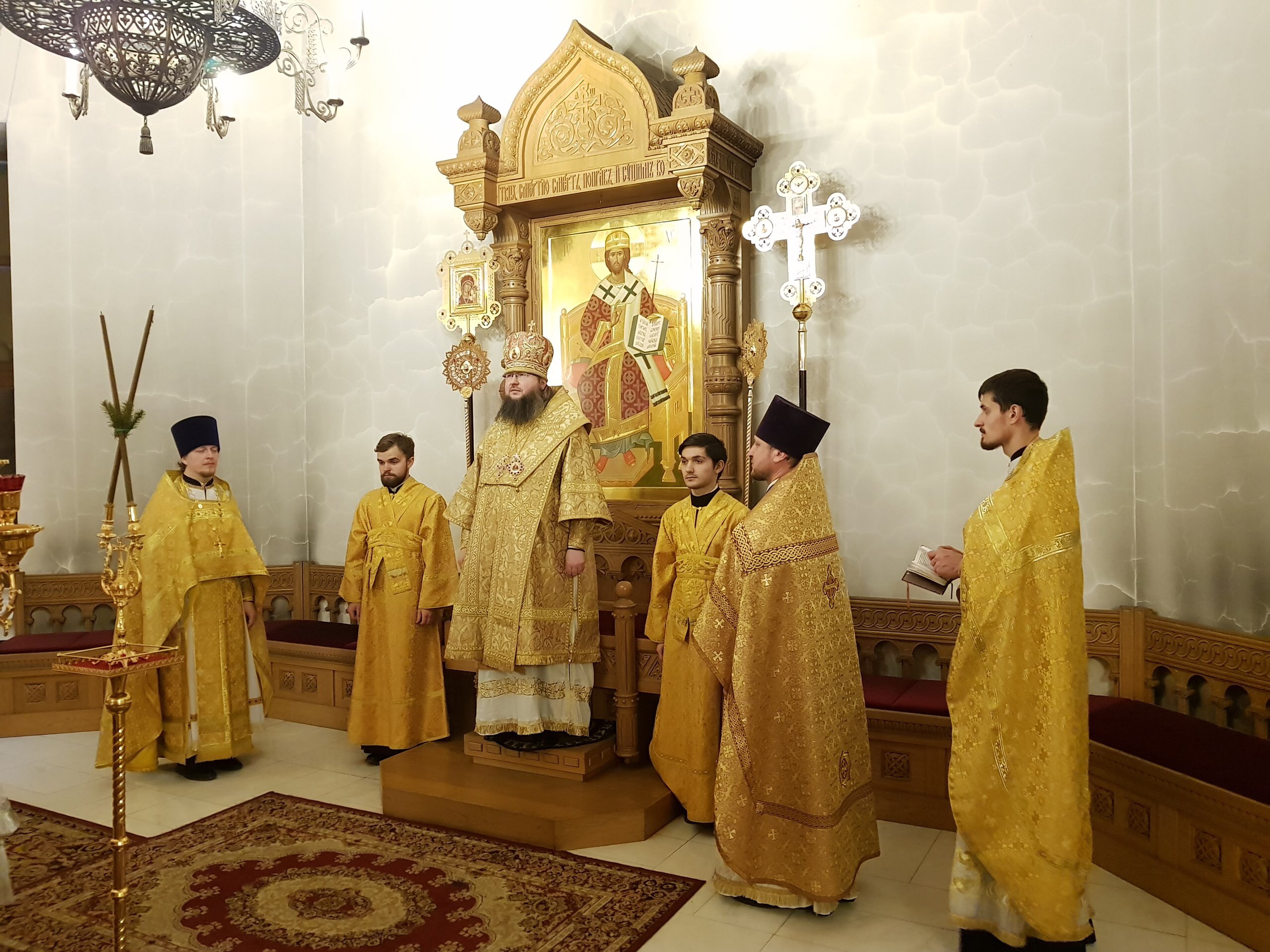 Его Преосвященству сослужили благочинный Десногорского округа настоятель собора в честь иконы Божией Матери «Всех скорбящих радость» протоиерей Виталий Сладков, клирики Рославльской епархии.