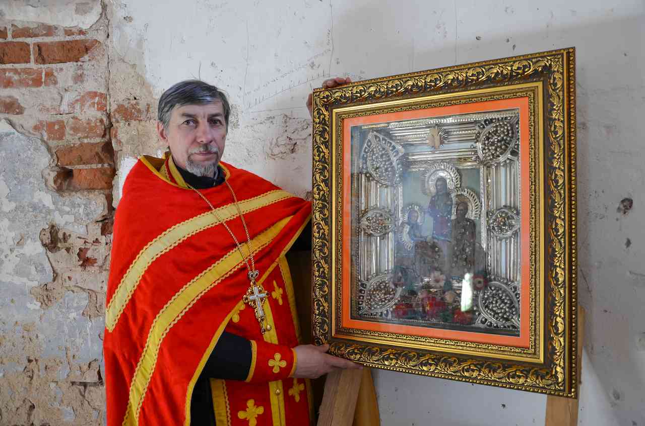 Перед началом молебна прихожанин храма передал в дар реставрируемой церкви образ Успения Пресвятой Богородицы.