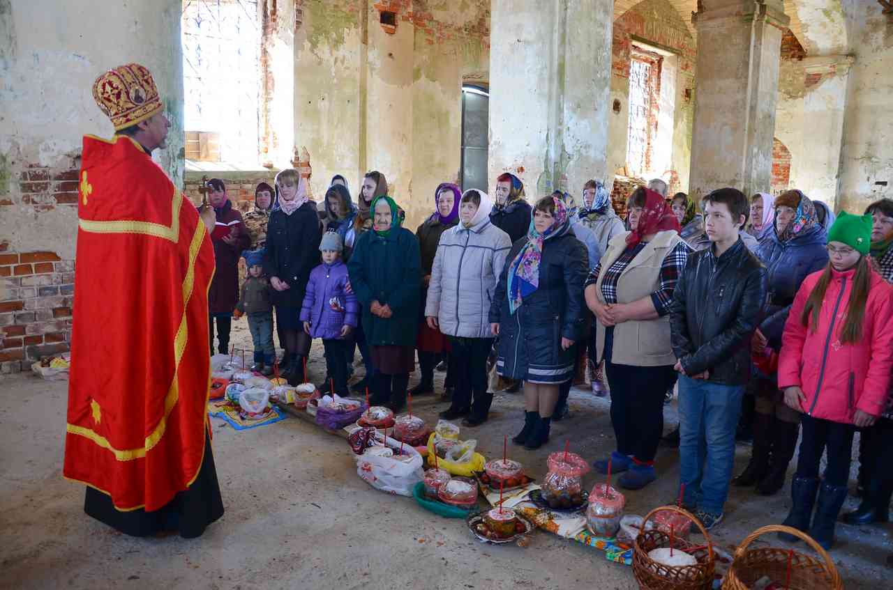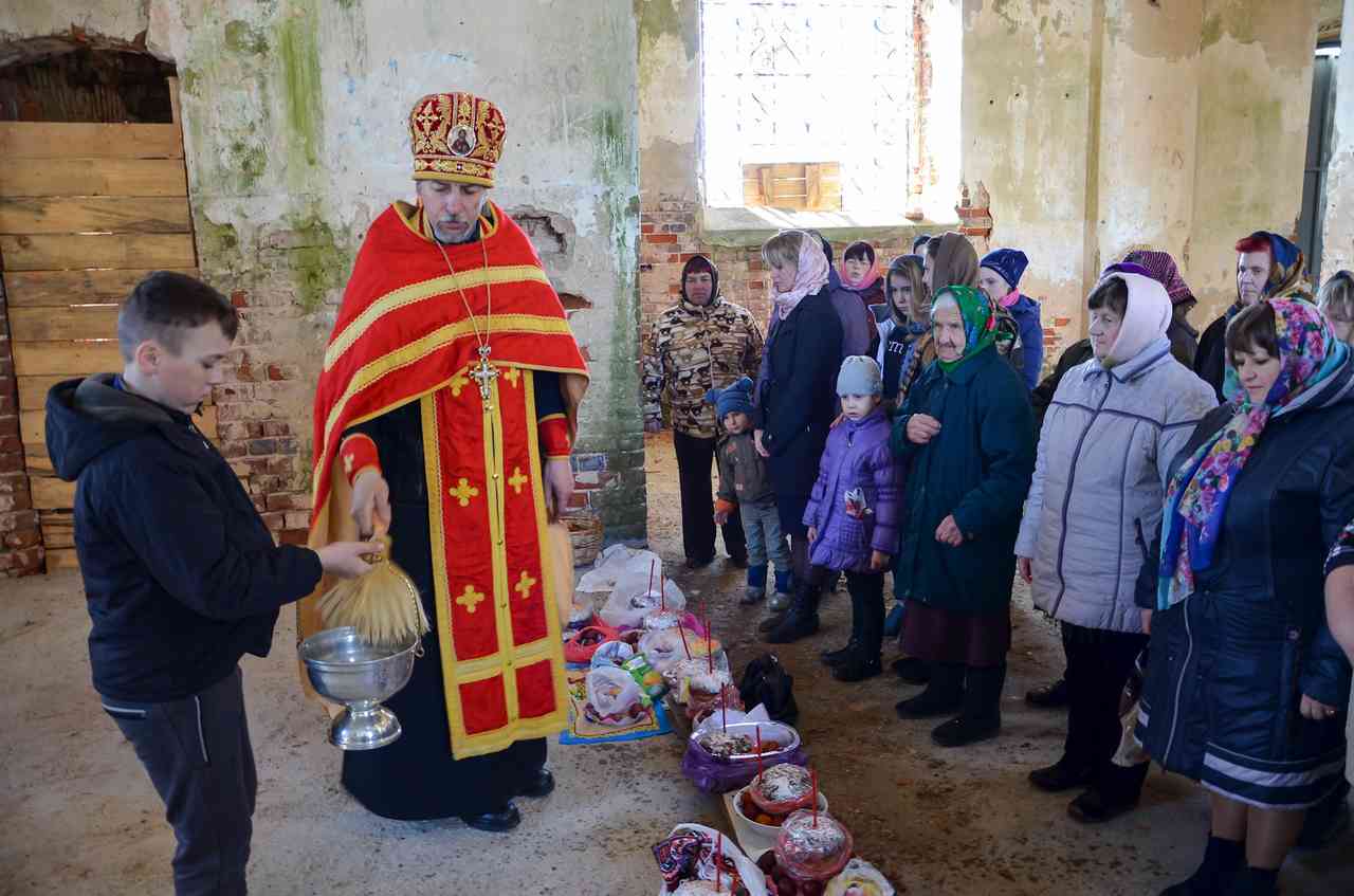 В завершении молебного пения протоиерей Роман освятил пасхальную снедь — куличи, пасхи и крашеные яйца, а жителей поселения поздравил со Светлым Христовым Воскресением.