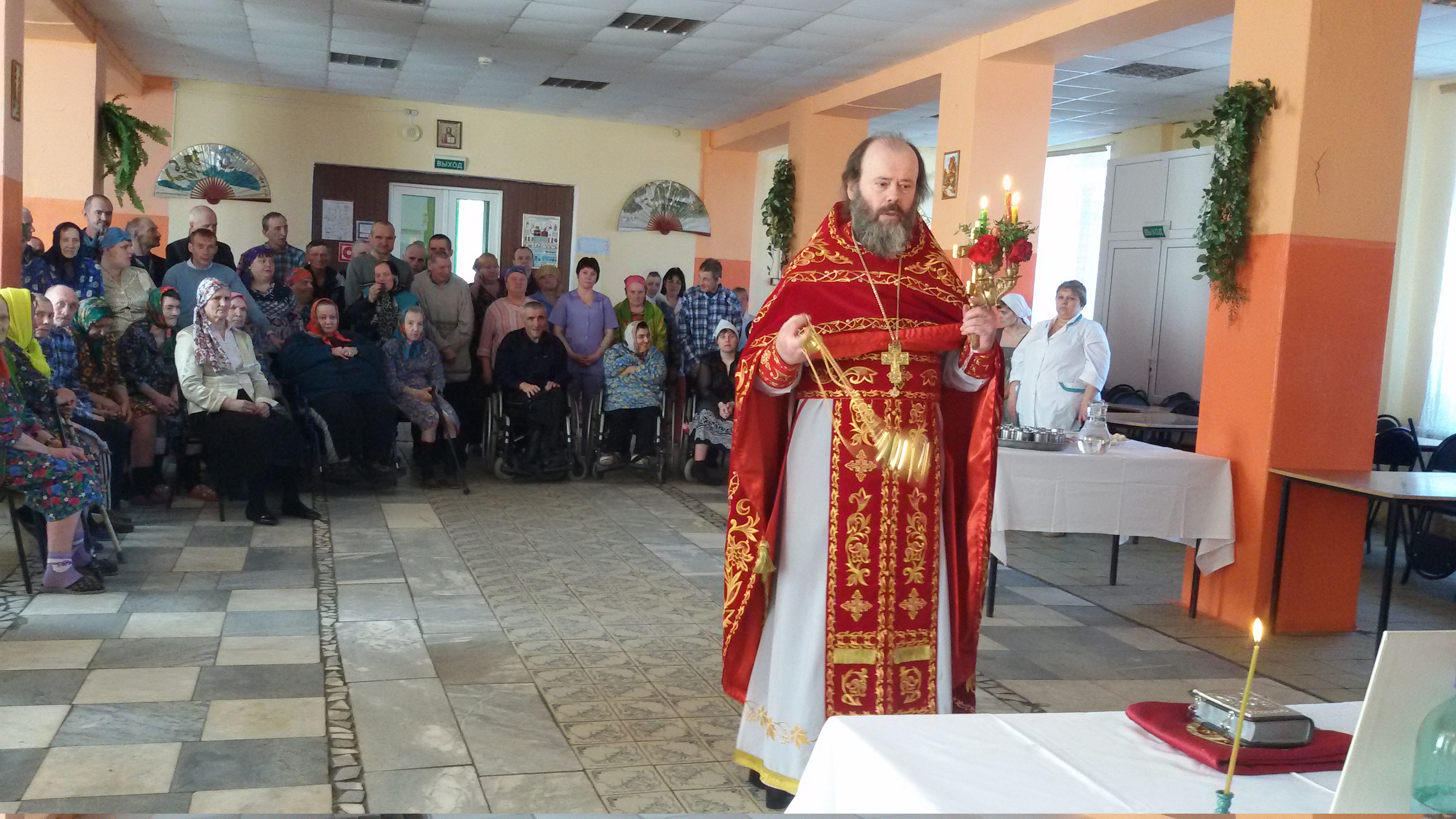 Во вторник Светлой седмицы настоятель храма Вознесения Господня города Рославля протоиерей Иаков Кушнир в очередной раз посетил Никольский психоневрологический интернат. В этот день для людей с ограниченными физическими возможностями была совершена пасхальная Божественная Литургия.