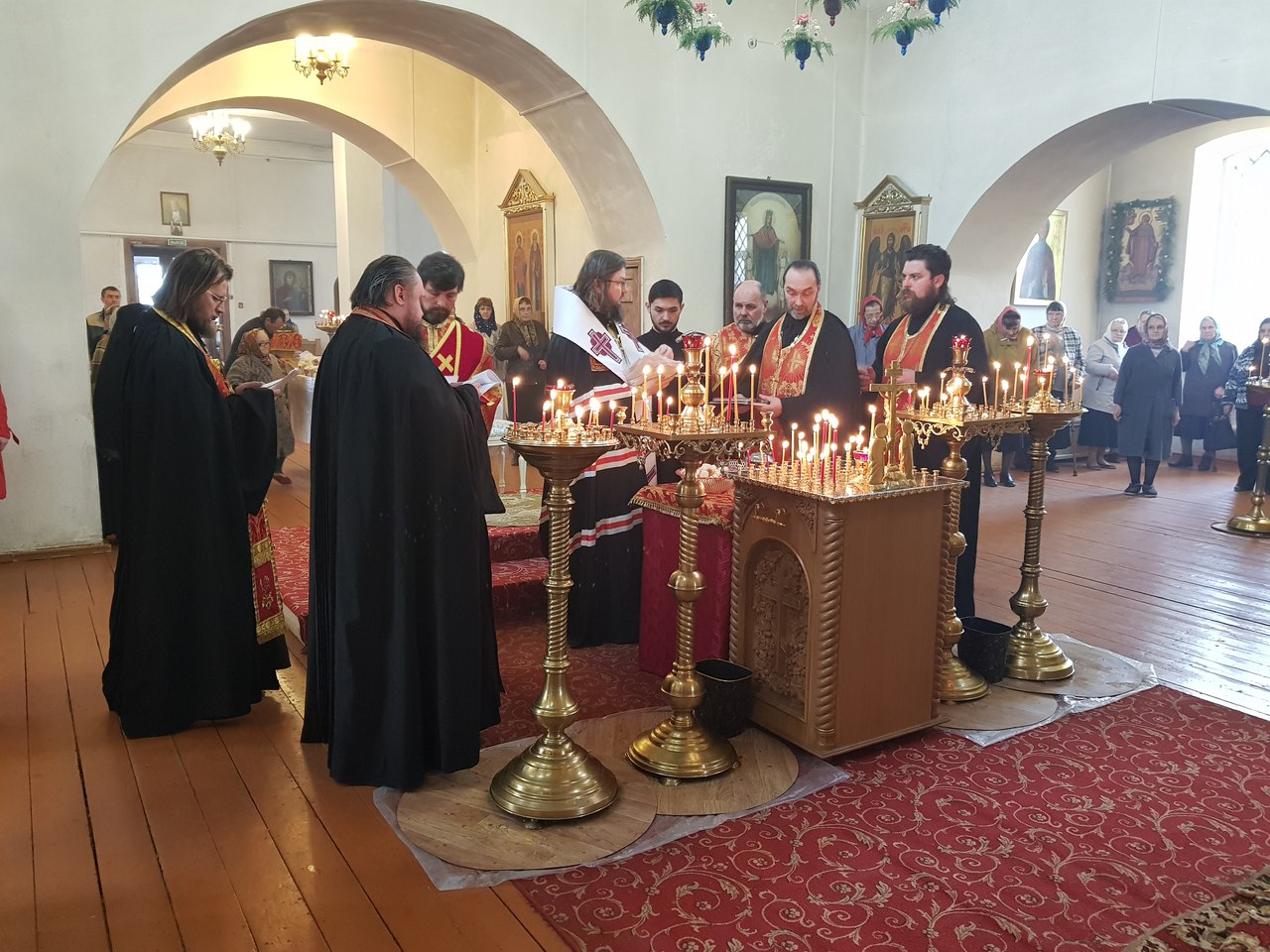 Его Преосвященству сослужили благочинный монастыря иеромонах Роман (Кулютин), секретарь епархии диакон Николай Бондар, братия монастыря в священном сане, клирики Рославльской епархии.