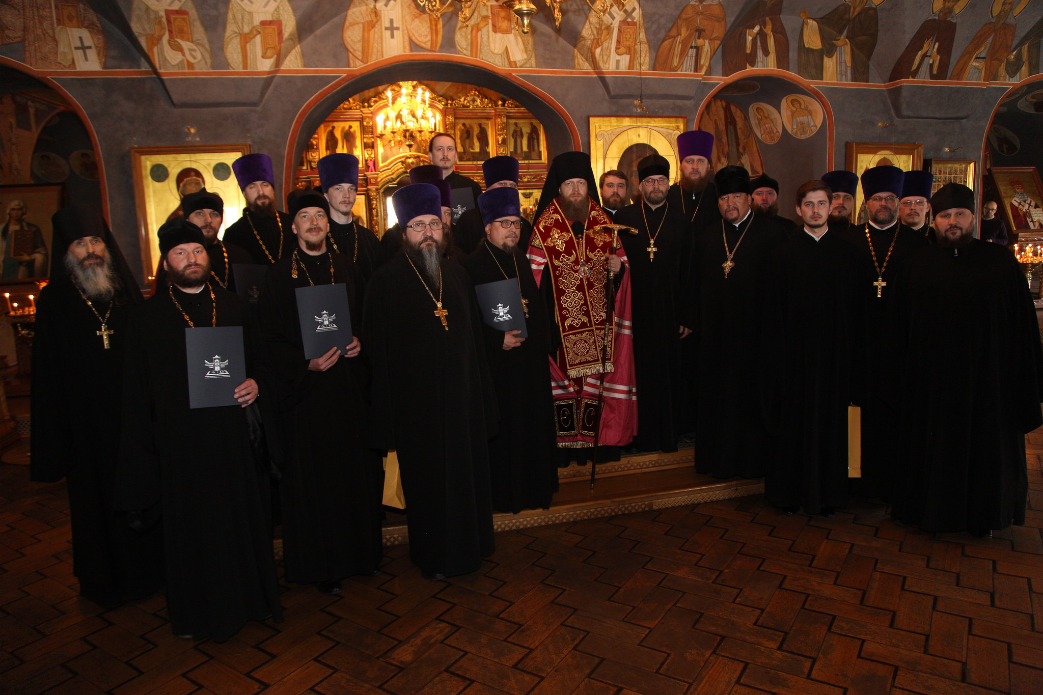 По окончании курсов первый заместитель управляющего делами Московской Патриархии епископ Воскресенский Савва совершил благодарственный молебен и вручил слушателям удостоверения о прохождении курсов повышения квалификации и памятные подарки.