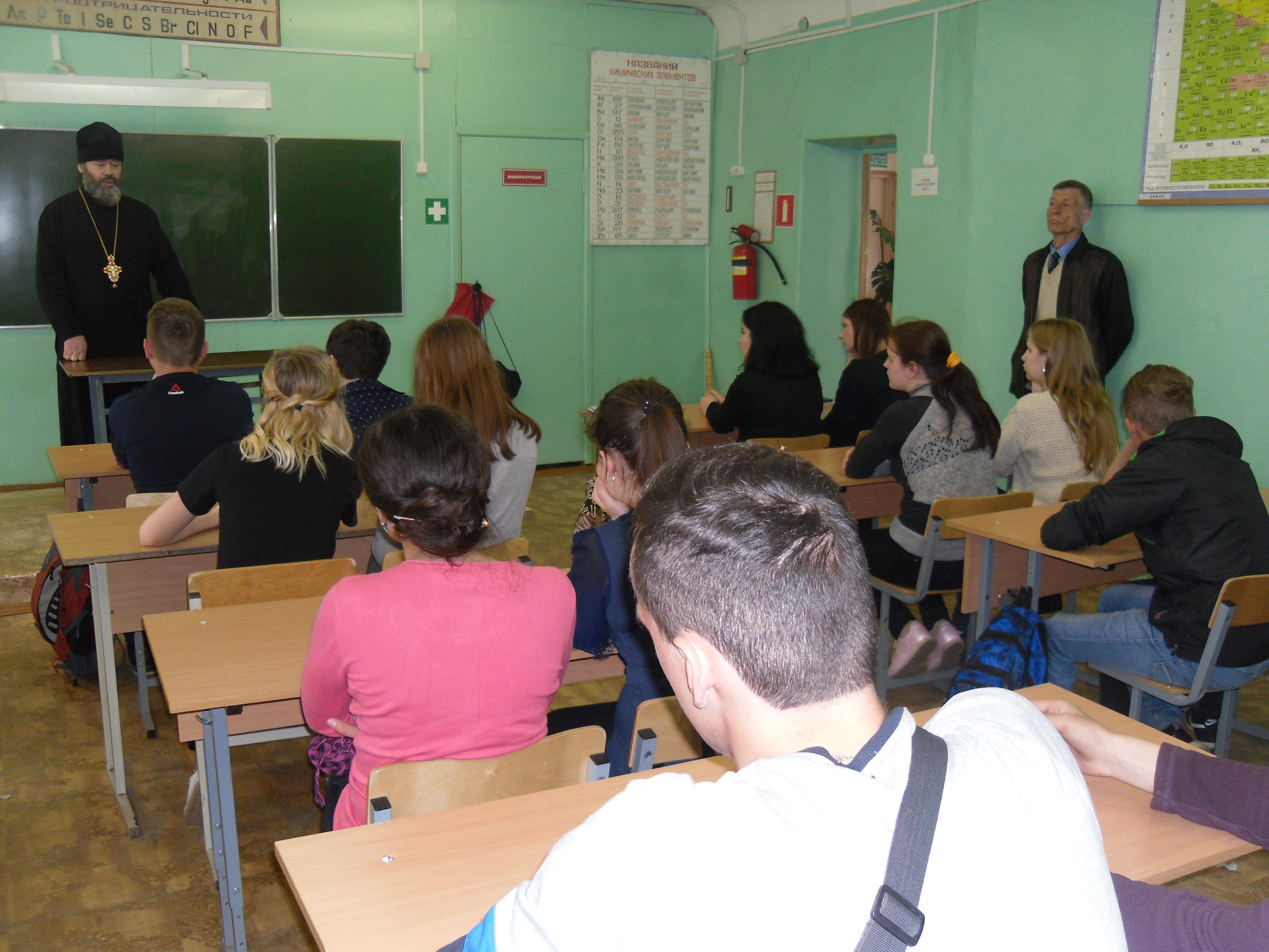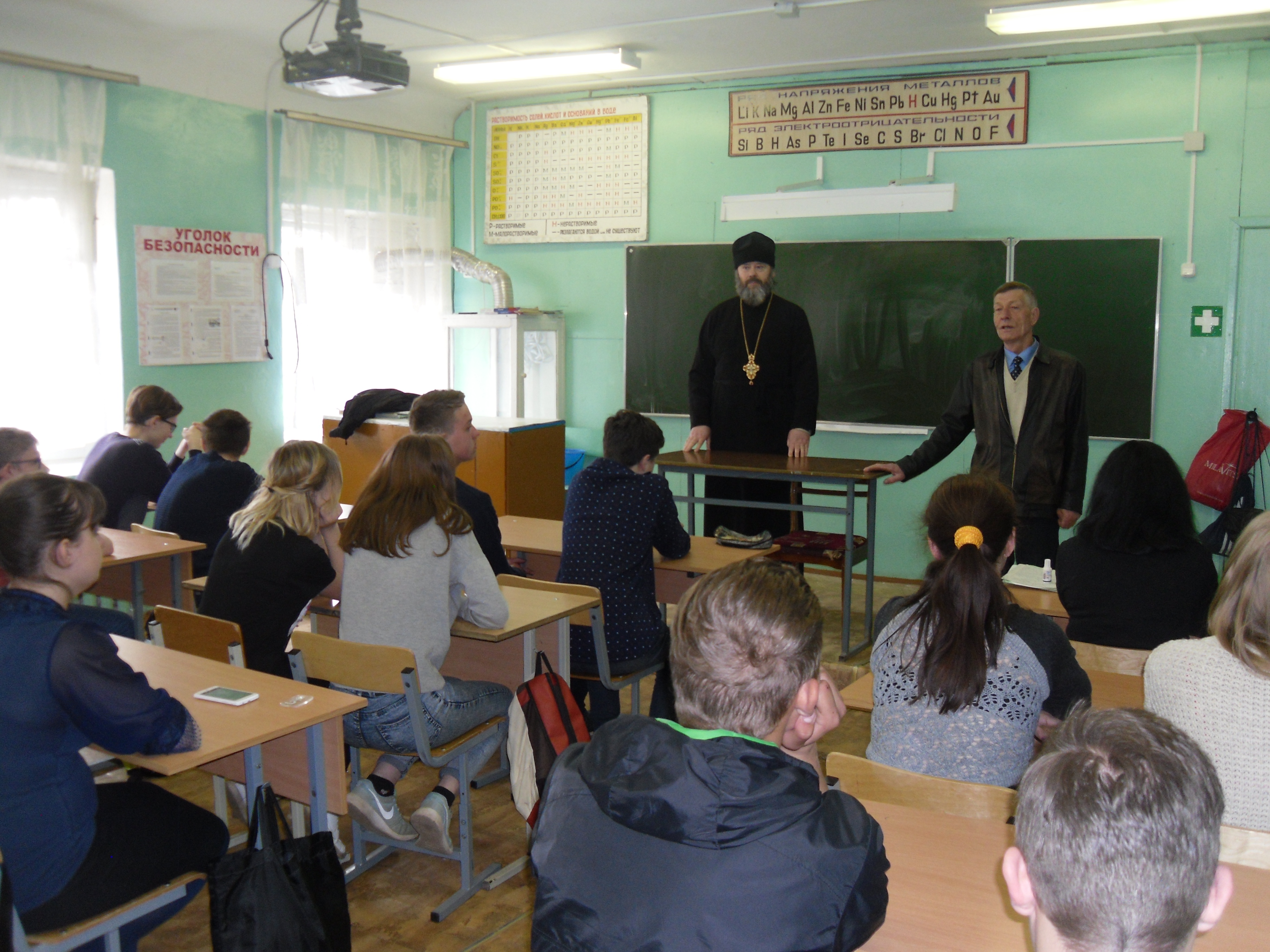 В светлые Пасхальные дни Христова Воскресения 25 апреля в Открытой (сменной) школе г. Рославля при Комитете образования для учащихся старших классов был проведен урок «Пасхальные дни милосердия». Для проведения урока в школу был приглашен настоятель Вознесенской церкви протоиерее Иаков Кушнир.