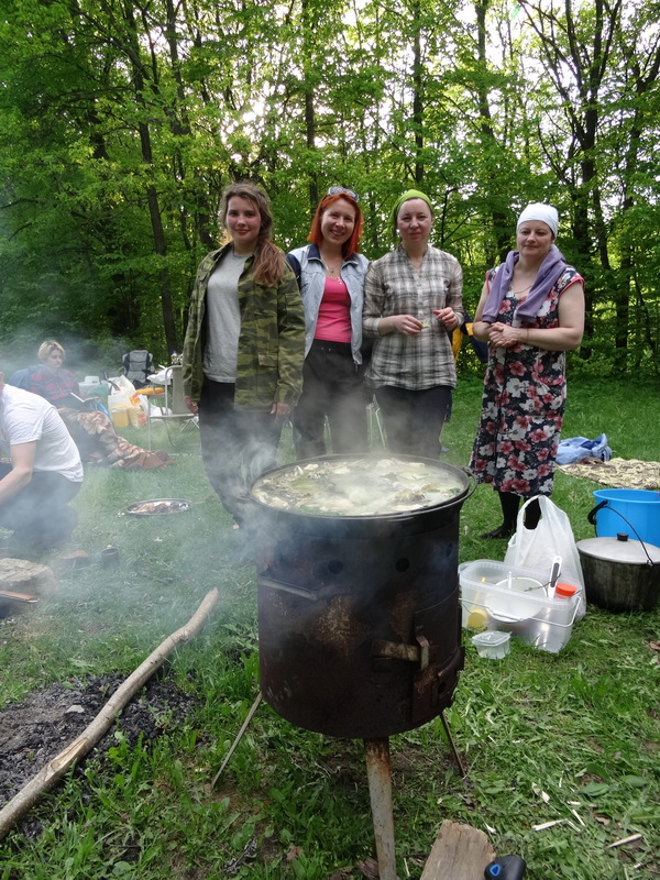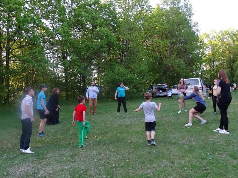 Программа праздника была крайне насыщена – традиционный лесной стол с ухой и мясом «с костра», игра в волейбол и дартс, соревнования по пулевой стрельбе, перетягивание каната, рыбалка. И военные песни у костра, ведь 9 мая, вместе со всей страной, мы с самого утра чествовали героев: утреннее богослужение, участие в акции «Бессмертный полк», подарочные открытки для ветеранов, изготовленные учащимися приходской Воскресной школы, встреча с молодежью двух епархий, посвященная Победе в Великой Отечественной войне, посещение Рославльского краеведческого музея, лития на Вознесенском мемориале, посещение мест человеческого подвига и боевой славы… И военные песни у костра.
