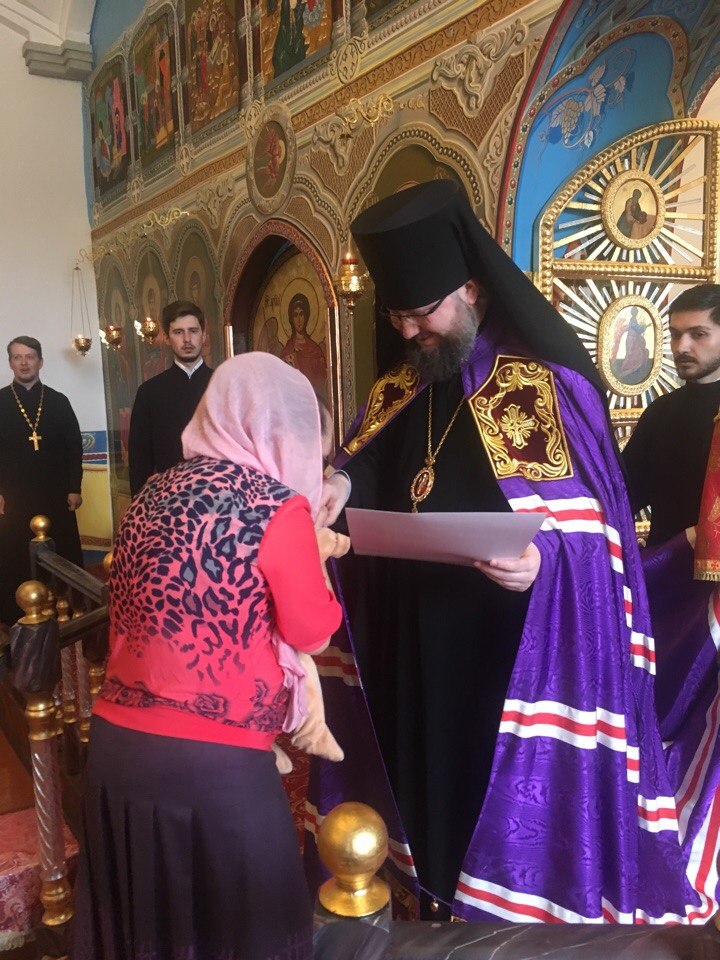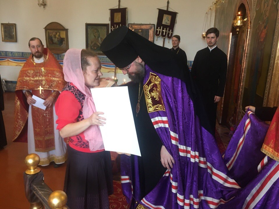 По окончании Богослужения епископ Мелетий обратился к прихожанам с Архипастырским словом и наградил медалями Святого Благоверного князя Ростислава III степени главу МО «Шумячский район» Голушкова Александра Васильевича и настоятеля храма в честь Илии Пророка поселка Шумячи иерея Сергия Зубачева, а также Благословенными Архиерейскими грамотами начальника отдела по Культуре и Спорту МО «Шумячский район» Семёнову Татьяну Георгиевну, начальника отдела по Образованию МО «Шумячский район» Кулешову Ирину Григорьевну, и Зубачеву Анну Робертовну.