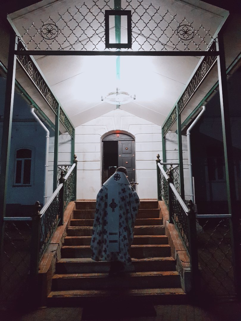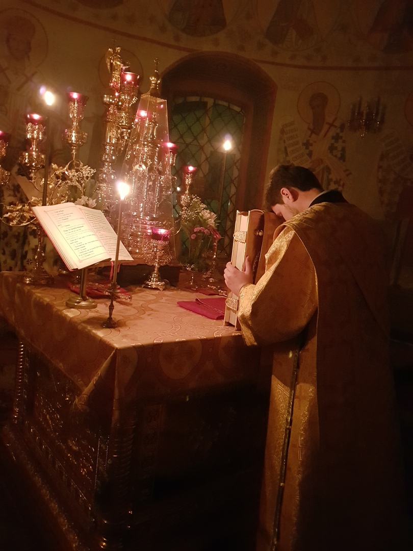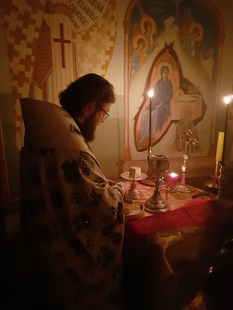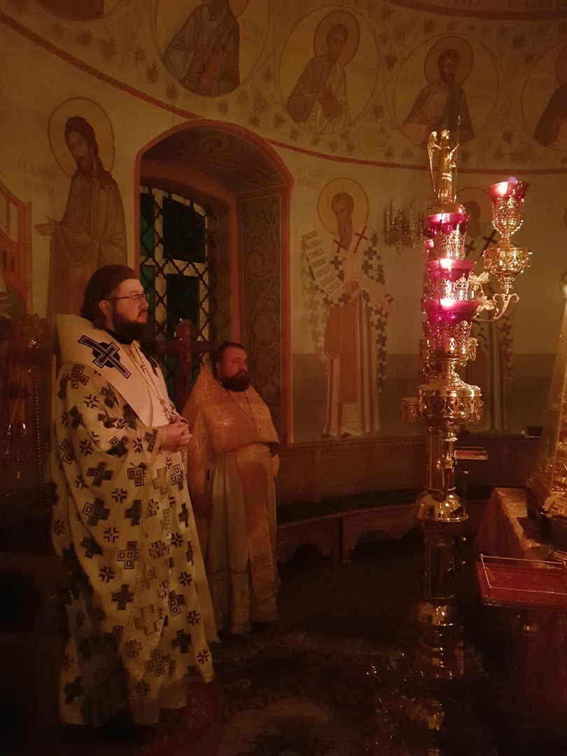 Его Преосвященству сослужили насельник монастыря иеромонах Боголеп (Пронин) и секретарь Рославльской епархии диакон Николай Бондар.