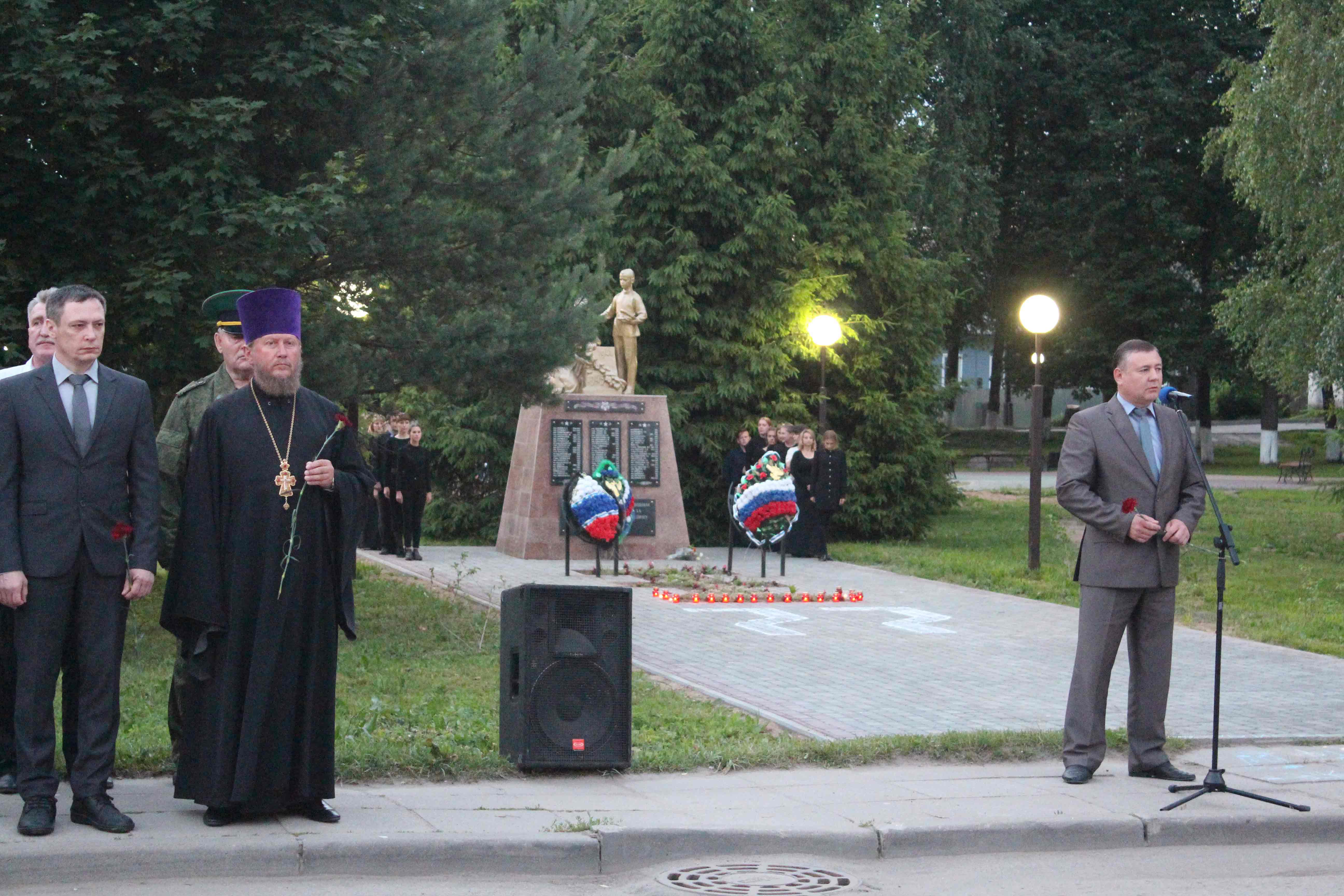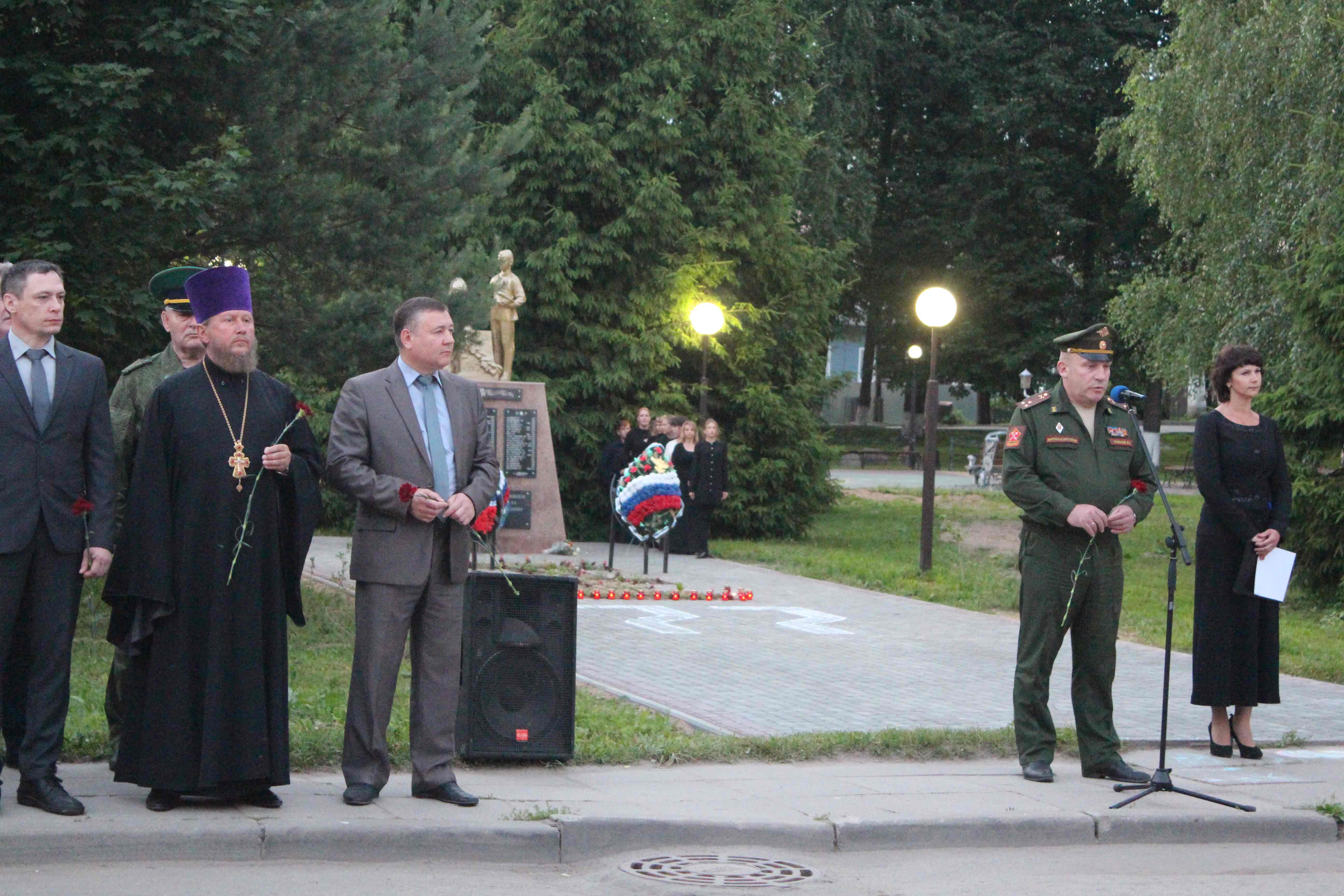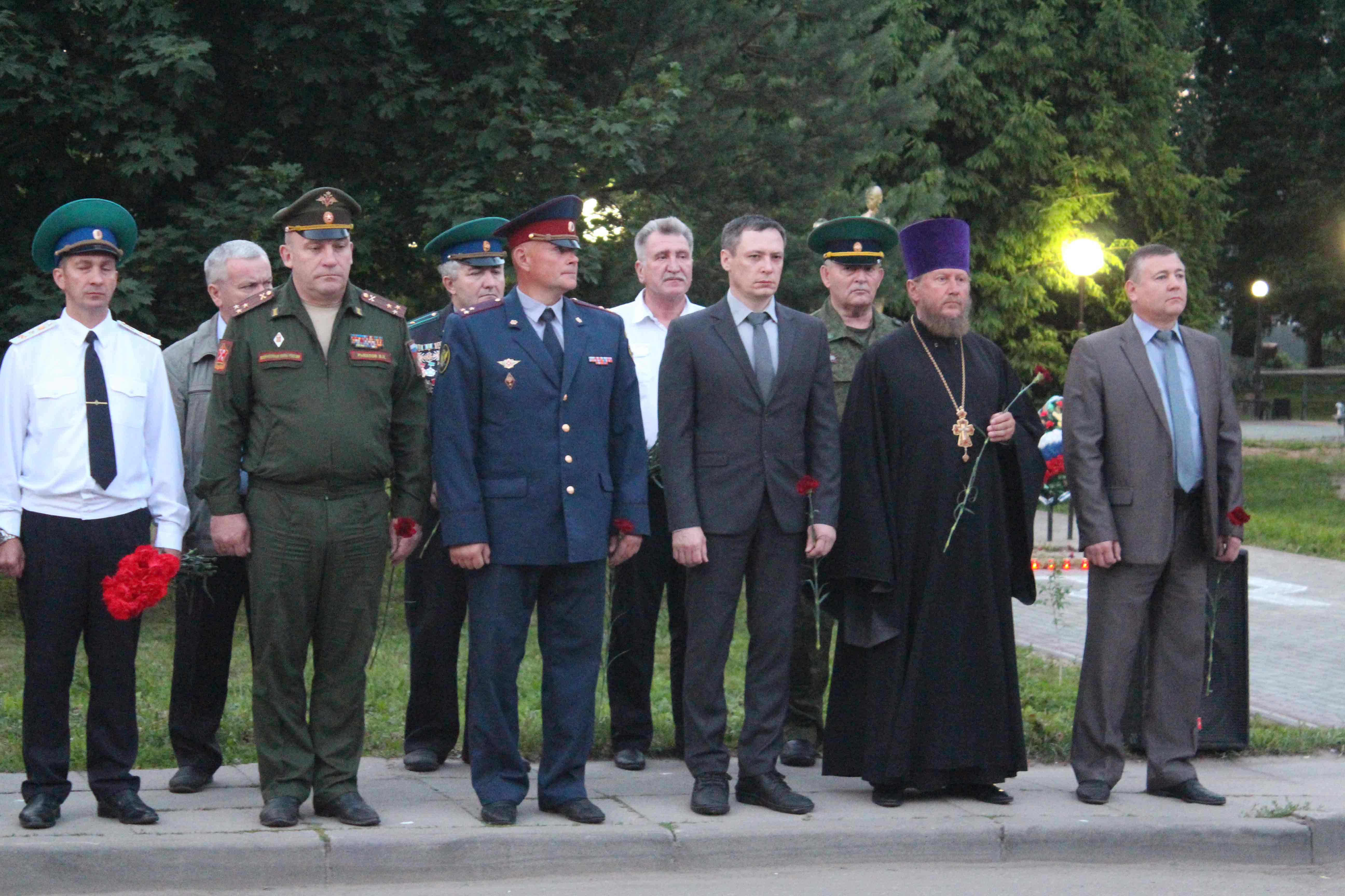 Перед жителями и гостями города выступили Глава муниципального образования «Починковский район» Смоленской области Александр Владимирович Голуб и военный комиссар Смоленской области Владимир Иванович Рыкалов. В памятном мероприятии приняли участие руководители УФСИН России по Смоленской области, Шаталовской в/ч №55840, представители Пограничного управления ФСБ России по Смоленской области и представители ветеранских организаций.