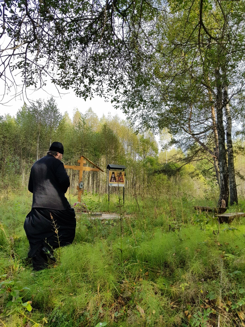 11 сентября 2018 года Его Преосвященство епископ Рославльский и Десногорский Мелетий и монахиня Фомаида (Голик) посетили место погребения преподобного Рославльского старца схимонаха Феофана (Талунина).