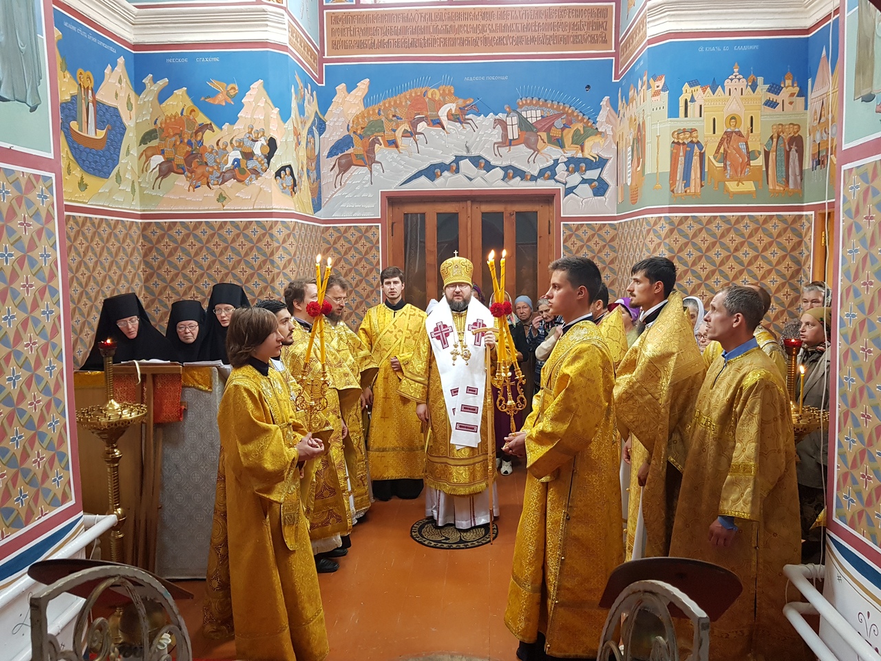 Его Преосвященству сослужили благочинный монастыря иеромонах Роман (Кулютин), Благочинный Гагаринского округа Вяземской епархии игумен Александр (Карпиков), иеромонах Боголеп (Пронин), древлехранитель епархии иерей Андрей Пудов, иерей Валерий Власов, и.о. руководителя Молодёжно-миссионерского отдела иерей Георгий Мамедов, секретарь епархии диакон Николай Бондар.