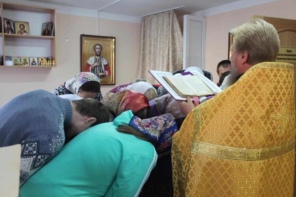 После молебна отец Николай посетил пациентов интерната и окропил их святой водой и помазал елеем. Отец Николай поздравил всех с церковным новолентием, а также подарил нательные крестики, иконки Спасителя, Божией Матери, святителя и чудотворца Николая и книги «Новый Завет».