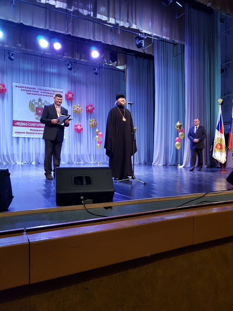 Владыка поздравил работников медико-санитарной части, а также удостоил начальника ФГБУЗ МСЧ №135 ФМБА России Азаренкова Алексея Валерьевича медали Святого благоверного великого князя Ростислава III степени.