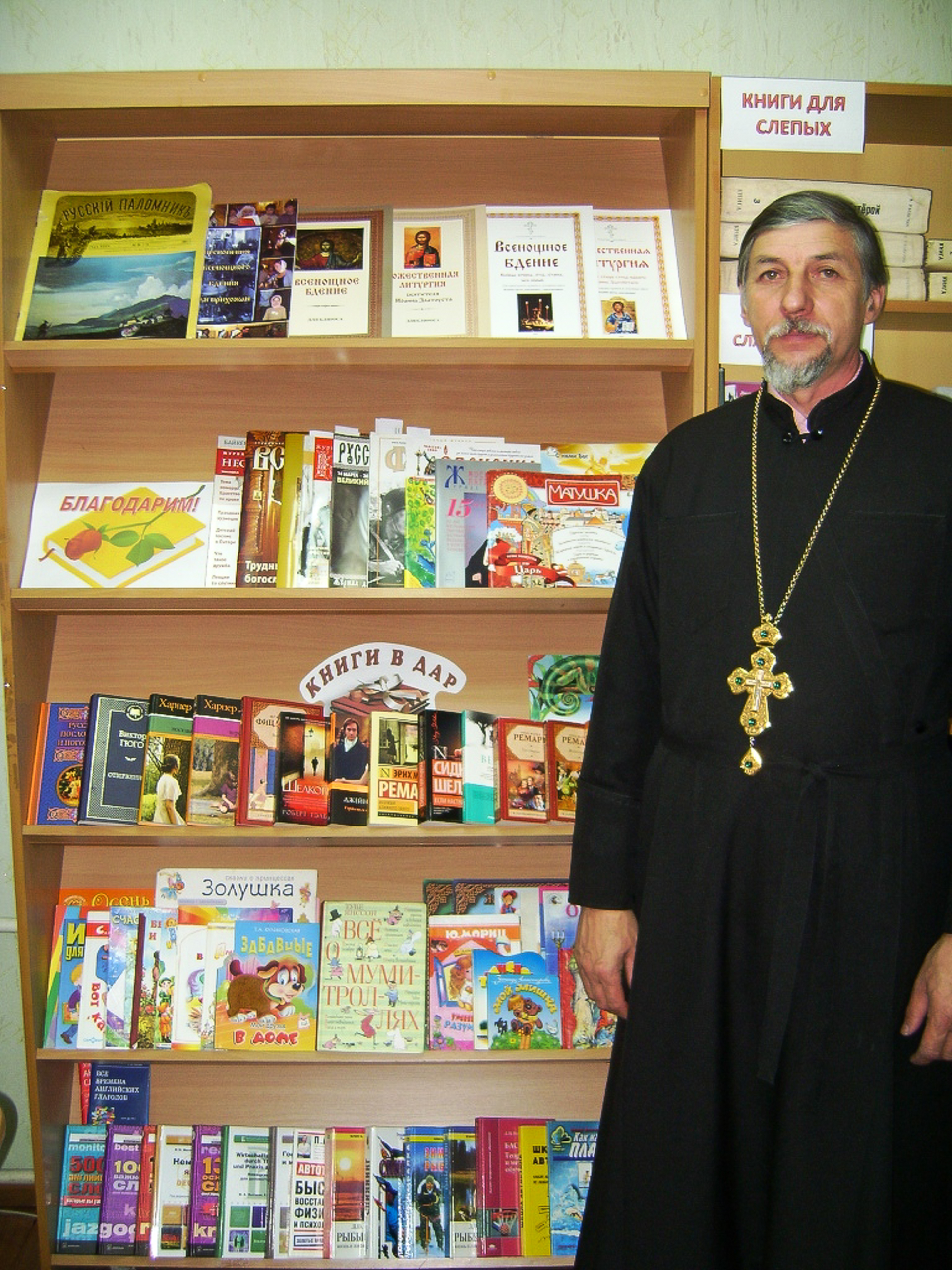 В мероприятии принял участие благочинный Хиславичского церковного округа протоиерей Роман Свистун, который подарил библиотеке новую православную литературу, в числе которой книги и журналы об Иоанне Кронштадтском.