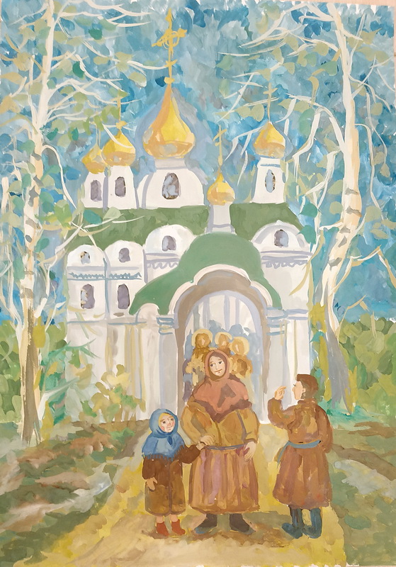Тихонова Вероника, 8 лет, учащаяся муниципального бюджетного общеобразовательного учреждения «Средняя школа № 1» г. Рославля Смоленской области. Работа «Дорога к храму».
