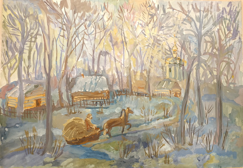 Климов Михаил, 15 лет, учащийся муниципального бюджетного учреждения дополнительного образования «Рославльская детская художественная школа» Смоленской области. Работа «Зимнее утро».