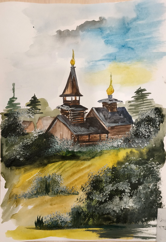 Зафронская Ксения, 8 лет, учащаяся муниципального бюджетного общеобразовательного учреждения «Волковичская основная школа» Рославльского района Смоленской области. Работа «Любимый храм».