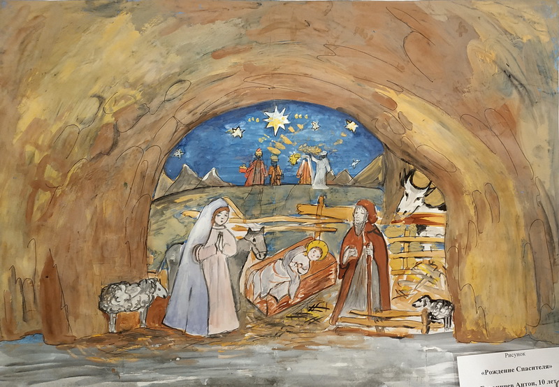 Гороничев Антон, 10 лет, учащийся муниципального бюджетного учреждения дополнительного образования «Детский дом творчества» г. Десногорска Смоленской области. Работа «Рождение Спасителя».