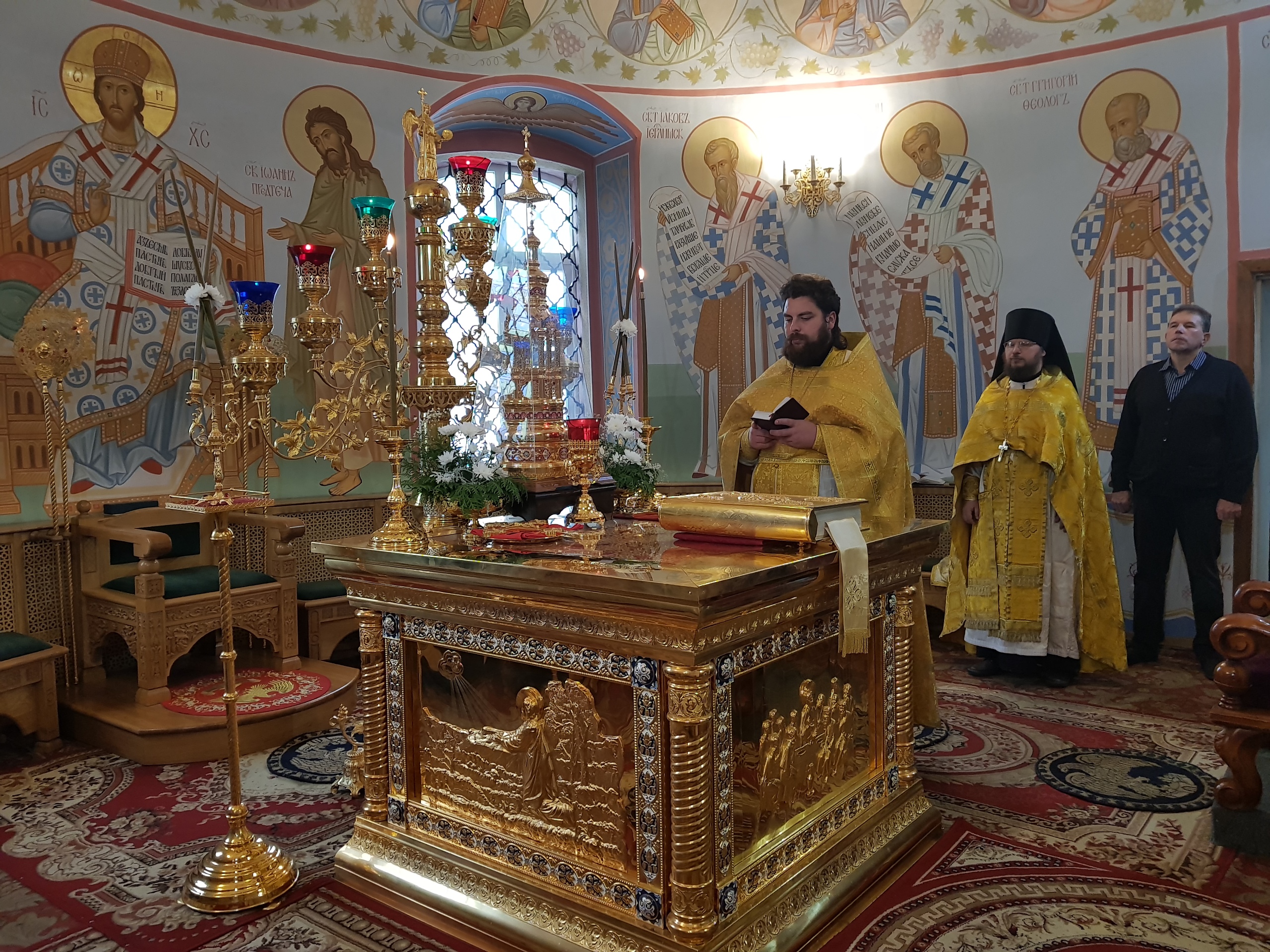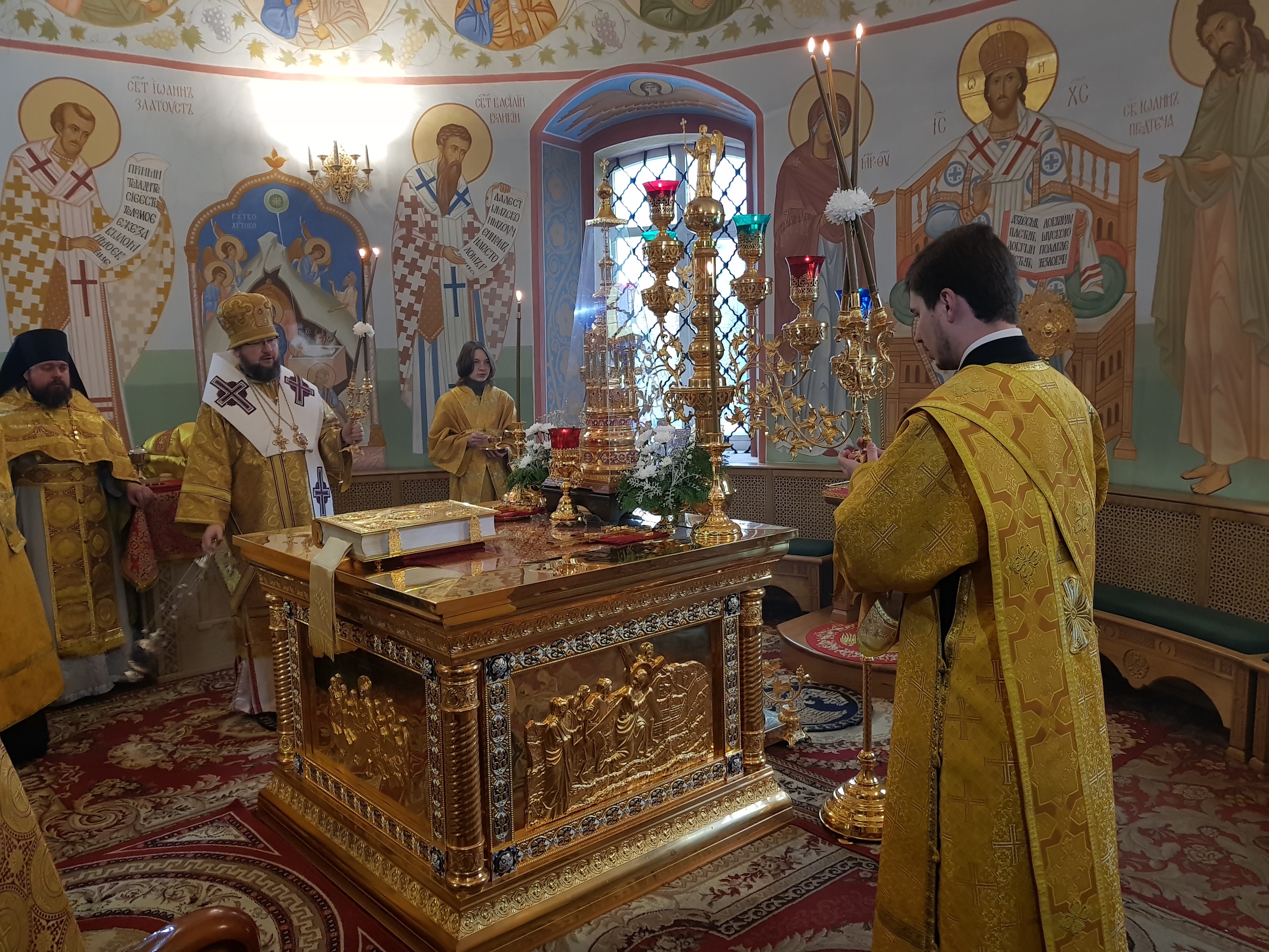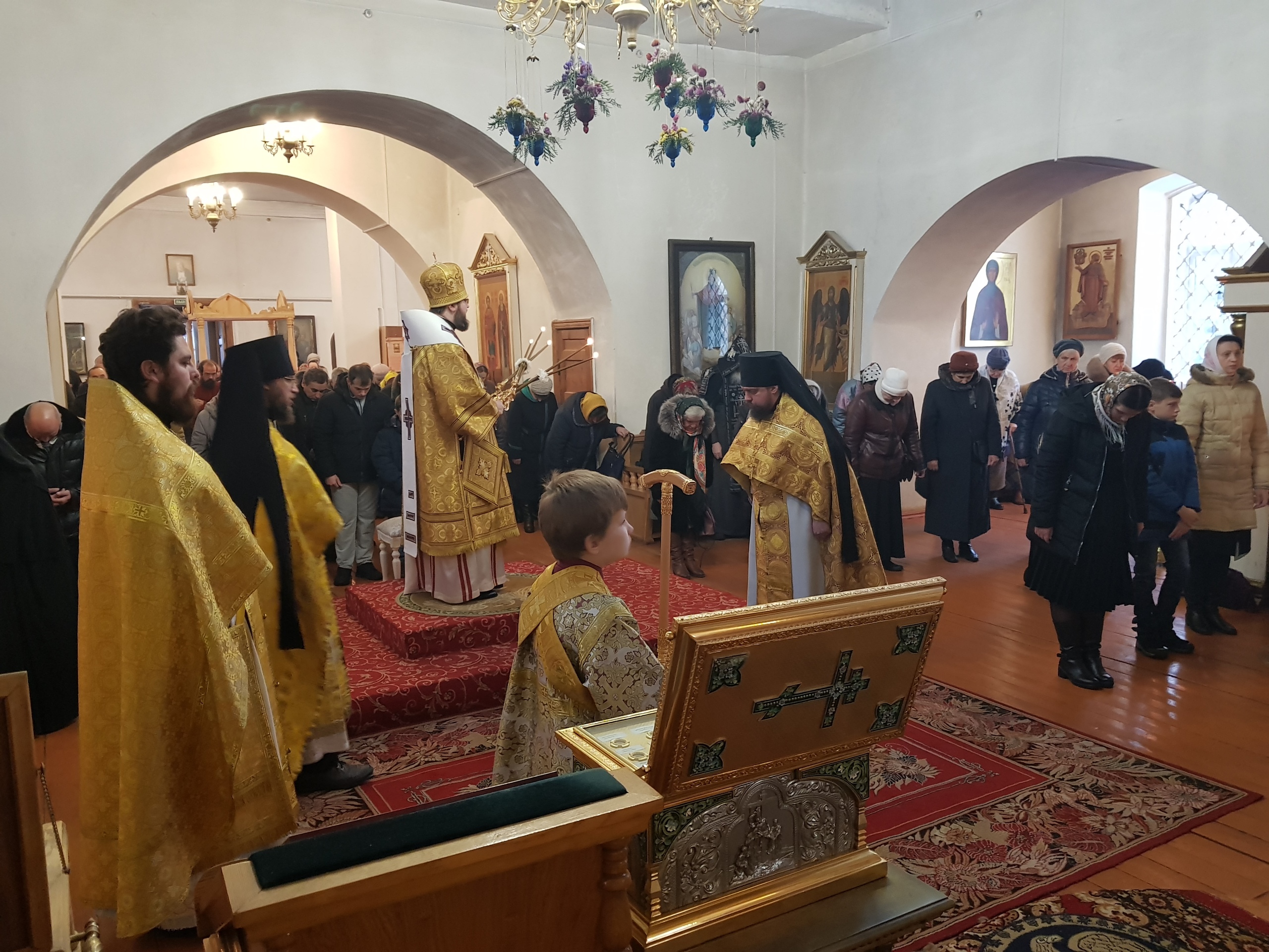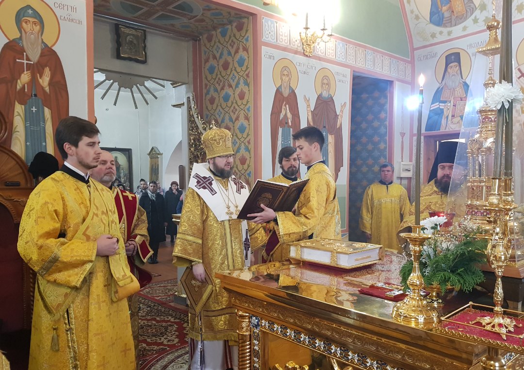 Его Преосвященству сослужили благочинный монастыря иеромонах Роман (Кулютин), иеромонах Боголеп (Пронин), древлехранитель епархии иерей Андрей Пудов, иерей Алексий Бочкарёв, секретарь епархии диакон Николай Бондар, эконом монастыря диакон Димитрий Родин, эконом епархии диакон Андрей Бодякин.