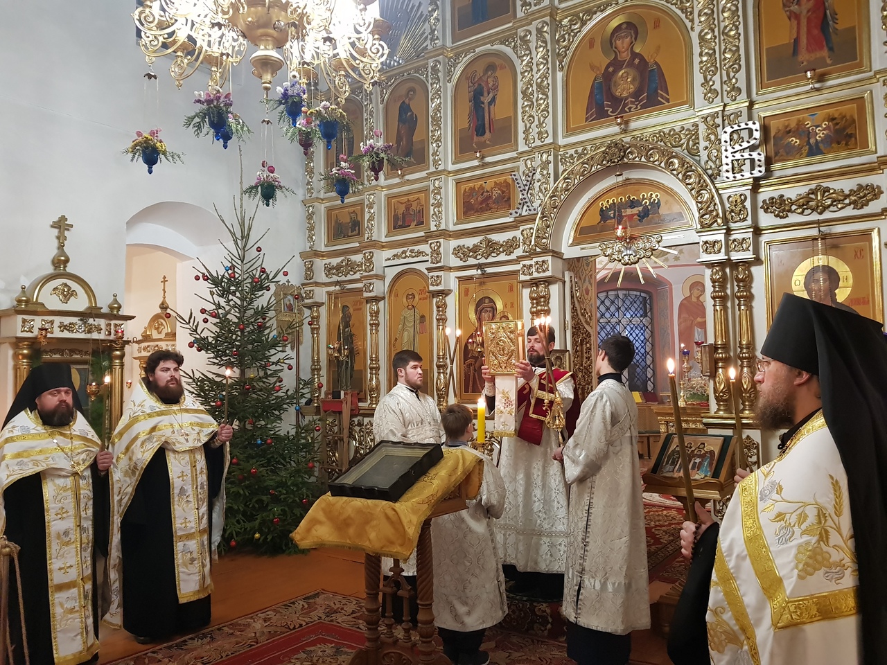 5 января 2019 года Его Преосвященство епископ Рославльский и Десногорский Мелетий совершил Всенощное Бдение в Преображенском соборе Спасо — Преображенского монастыря города Рославля.