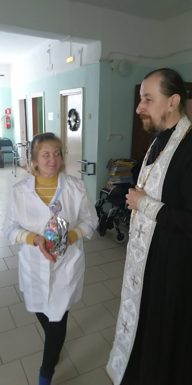 7 января 2019 года, в Рождество Господа Бога и Спаса нашего Иисуса Христа, настоятель Свято-Ильинского храма п. Шумячи иерей Сергий Зубачев и диакон Евгений Рябихин посетили Дом престарелых д. Петровичи.