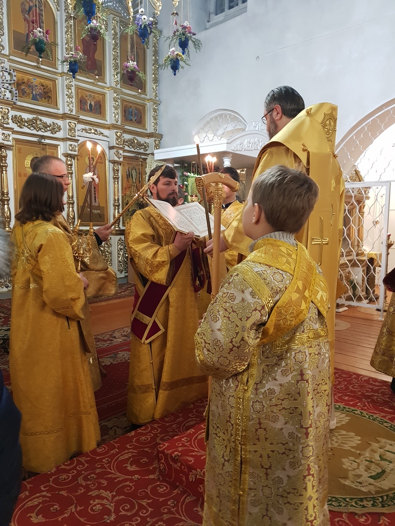 Его Преосвященству сослужили благочинный монастыря иеромонах Роман (Кулютин), иеромонах Боголеп (Пронин), древлехранитель епархии иерей Андрей Пудов, иерей Алексий Бочкарёв, секретарь епархии диакон Николай Бондар, эконом епархии диакон Андрей Бодякин, эконом монастыря диакон Димитрий Родин.