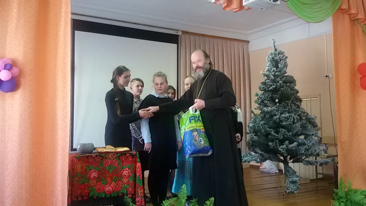 На праздник был приглашен и настоятель Вознесенской церкви города Рославля протоиерей Иаков Кушнир с прихожанами храма. Он поздравил всех с праздником и поблагодарил за приглашение. Обращаясь к присутствующим, священник подчеркнул, что, к сожалению, праздники заканчиваются, наступают будни, но праздник в душе от соприкосновения со светлым и прекрасным остается на всю жизнь.