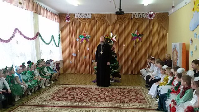 Завершая празднование рождественских святок, настоятель храма Вознесения Господня посетил детский садик «Солнышко» на прописном приходе в с Остер.