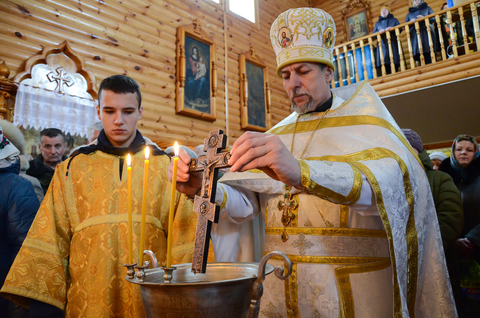 После заамвонной молитвы при пении тропарей «Глас Господень на водах» отцом благочинным был совершен чин великого освящения воды — Агиасмы.