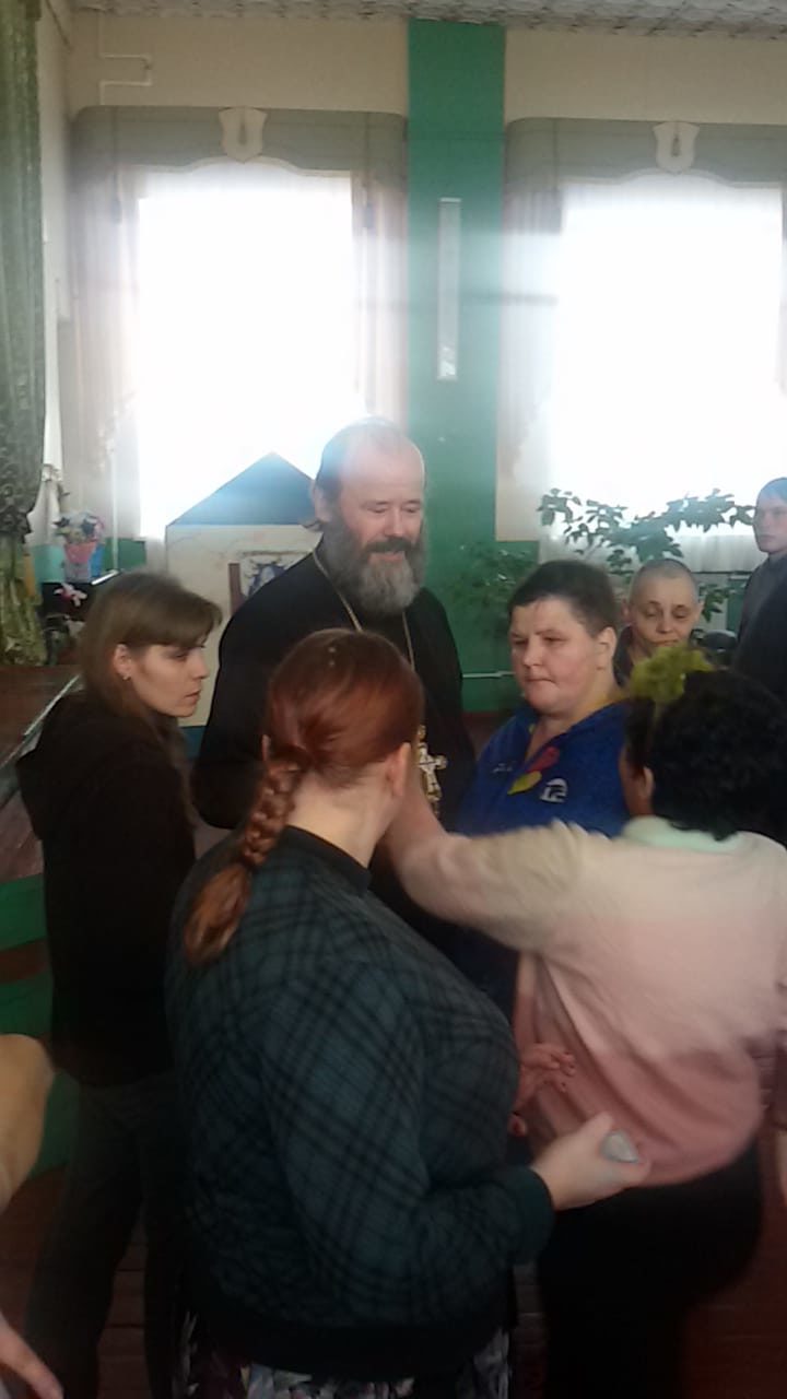 В дни попраздненства Крещения Господня прихожане храма Вознесения Господня, совместно с учащимися и преподавателями Остерской средней школы, посетили социальное учреждение Никольский психоневрологический интернат. Люди с ограниченными возможностями имели возможность пообщаться с детьми, что для них редкость, а вместе с тем и великая радость.