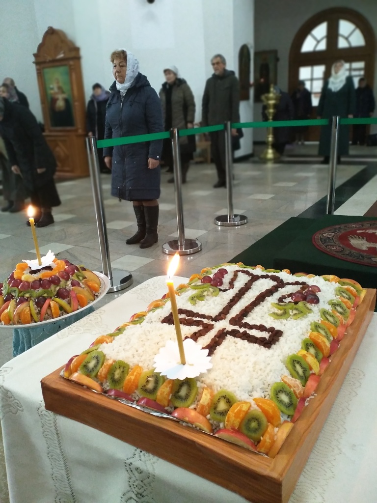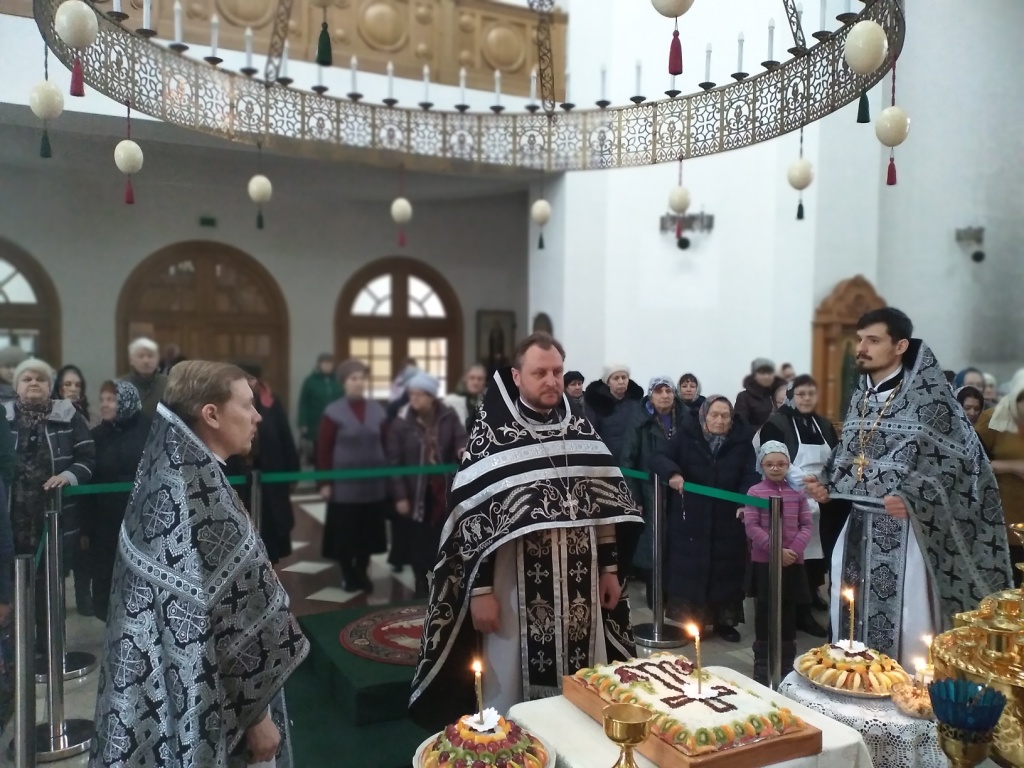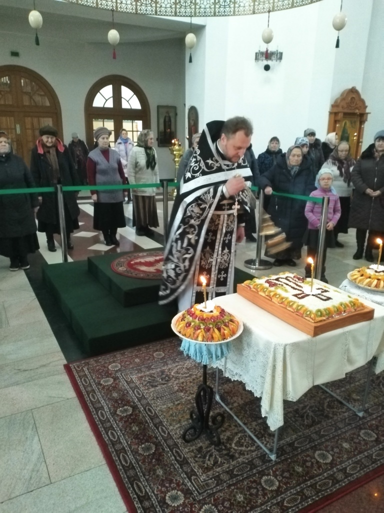 В пятницу по заамвонной молитве духовенство собора совершило молебное пение великомученику Феодору Тирону, по окончании которого настоятель собора протоиерей Виталий Сладков освятил коливо, которое было затем роздано всем молившимся за богослужением.