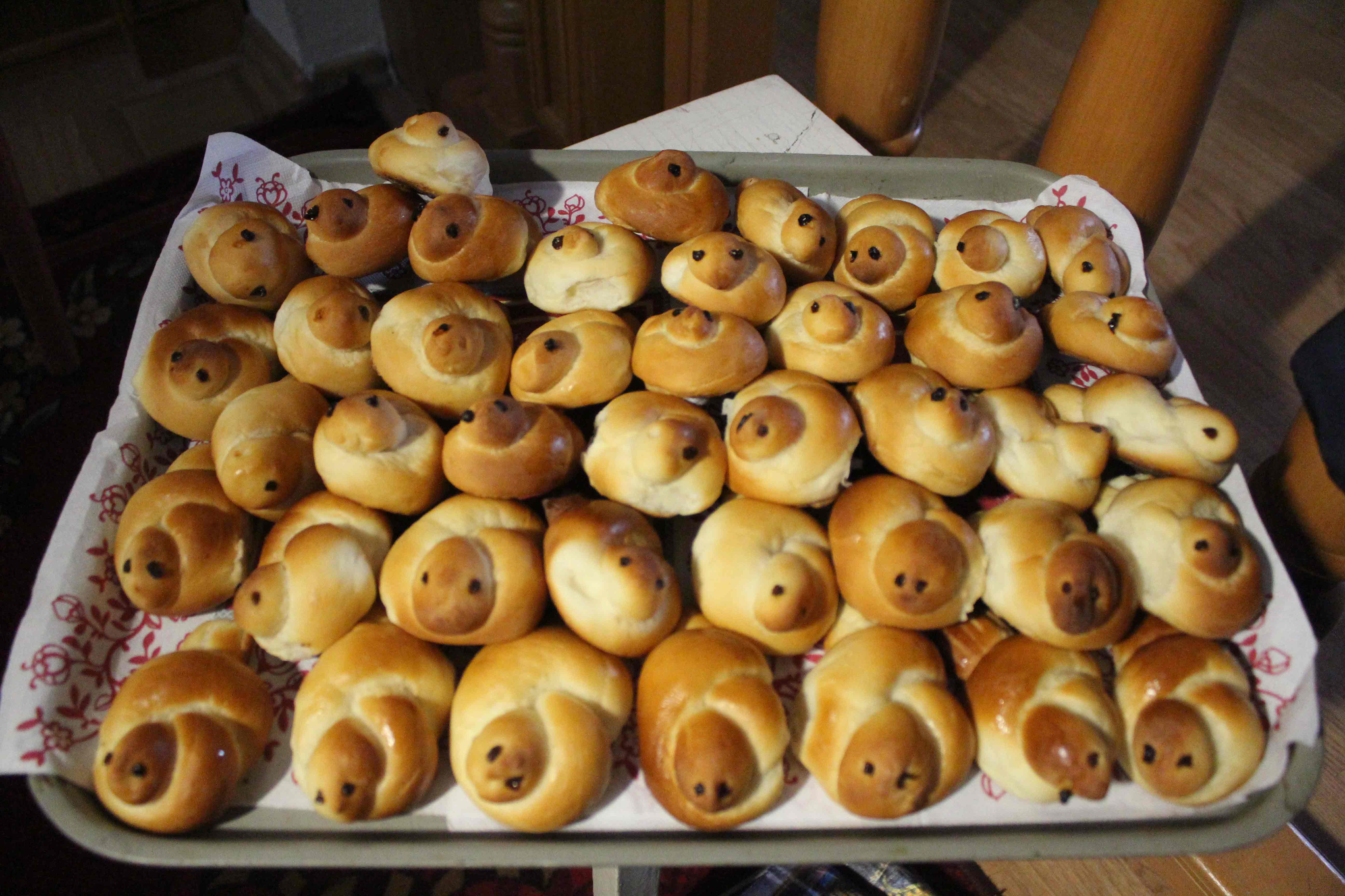 В завершение богослужения присутствующие получили освященные испеченные жаворонки, которые являются символом чистой души, воспарившей к Богу.