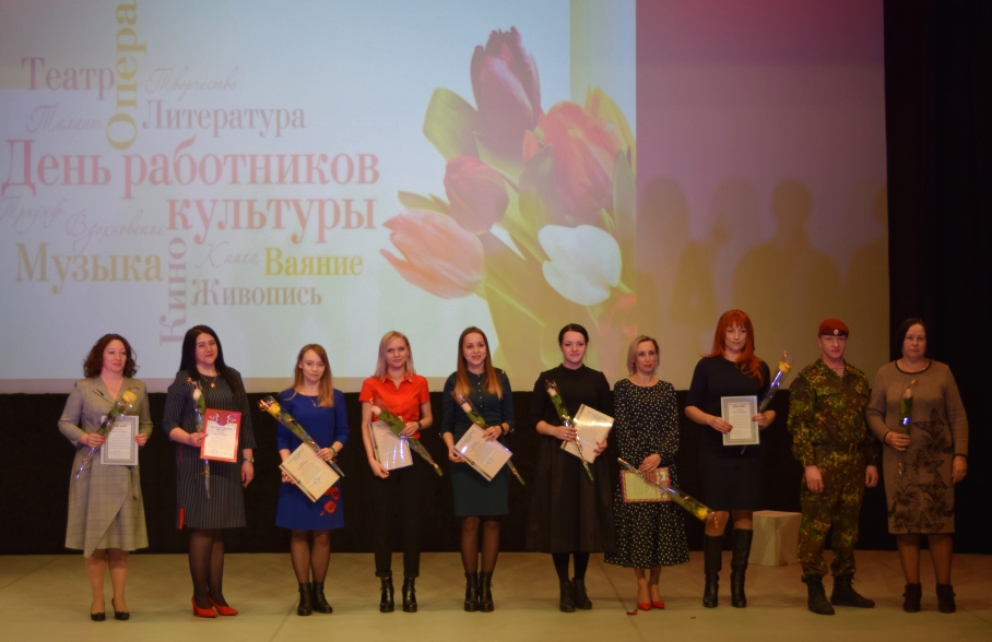 24 марта в киноконцертном зале Центра культуры и молодёжной политики г.Десногорска состоялось праздничное торжественное мероприятие, посвященное Дню работника культуры. Со словами поздравлений к собравшимся в зале людям творческих профессий обратились Глава муниципального образования «город Десногорск» Смоленской области А.Н. Шубин и председатель Комитета по культуре, спорту и молодежной политике Королева А.А. За плодотворный и ответственный труд, создание условий для развития и процветания культуры в городе, творческое становление личности, профессионализм и в связи с Днем работника культуры грамотами и благодарностями были отмечены многие работники культурных учреждений города.