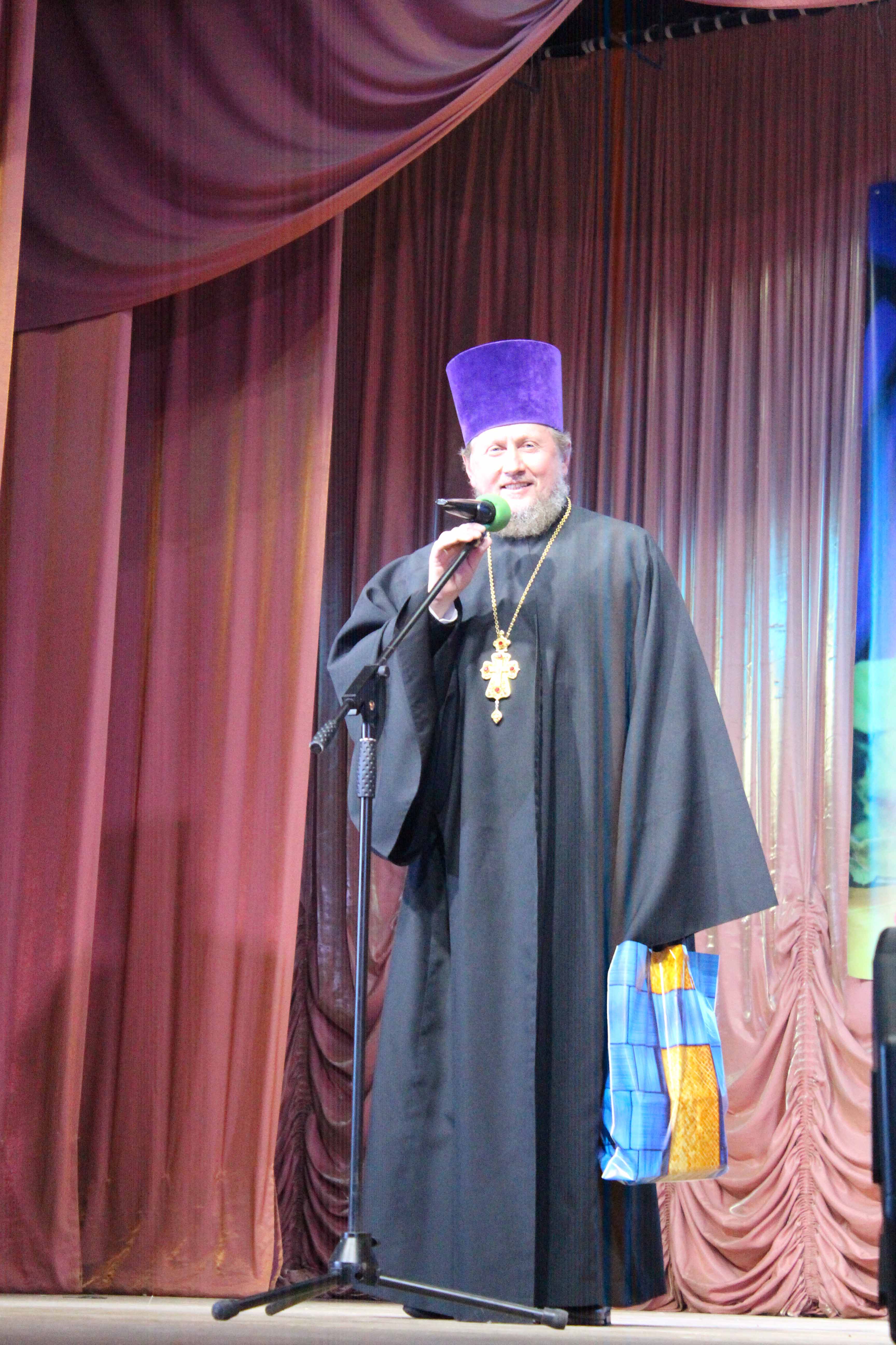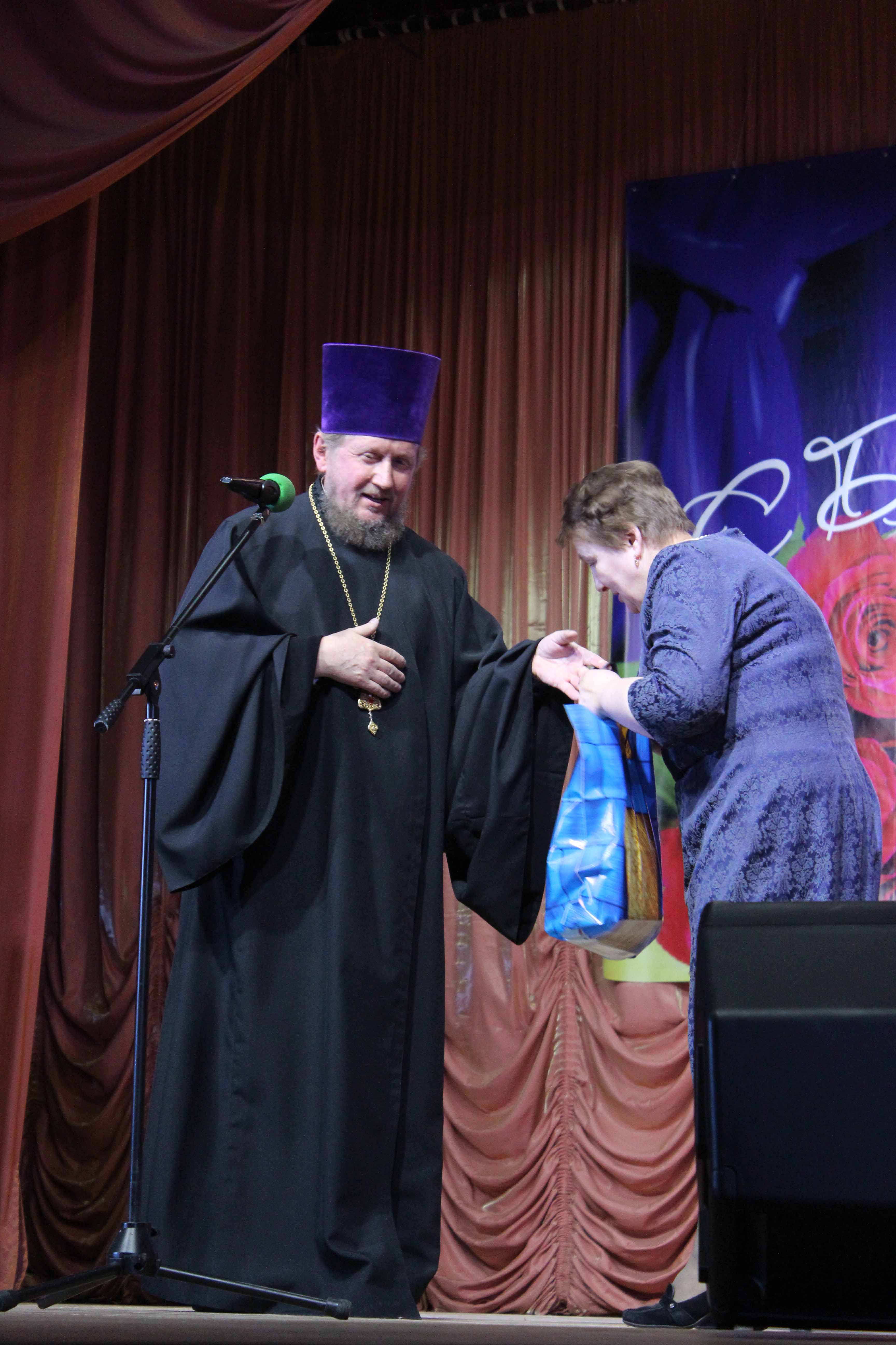 Отец Николай присоединился ко всем поздравлениям и выразил огромную благодарность за многолетнее соработничество в сфере духовно-нравственного и культурного воспитания жителей района. Более 20 лет проводятся совместные праздничные мероприятия в праздник Рождества Христова, Пасхи, праздники в Долгомостье, посвященные подвигу святого Меркурия Смоленского, совместные патриотические мероприятия, выставки творческих работ. На каждом мероприятии священник является почетным гостем.