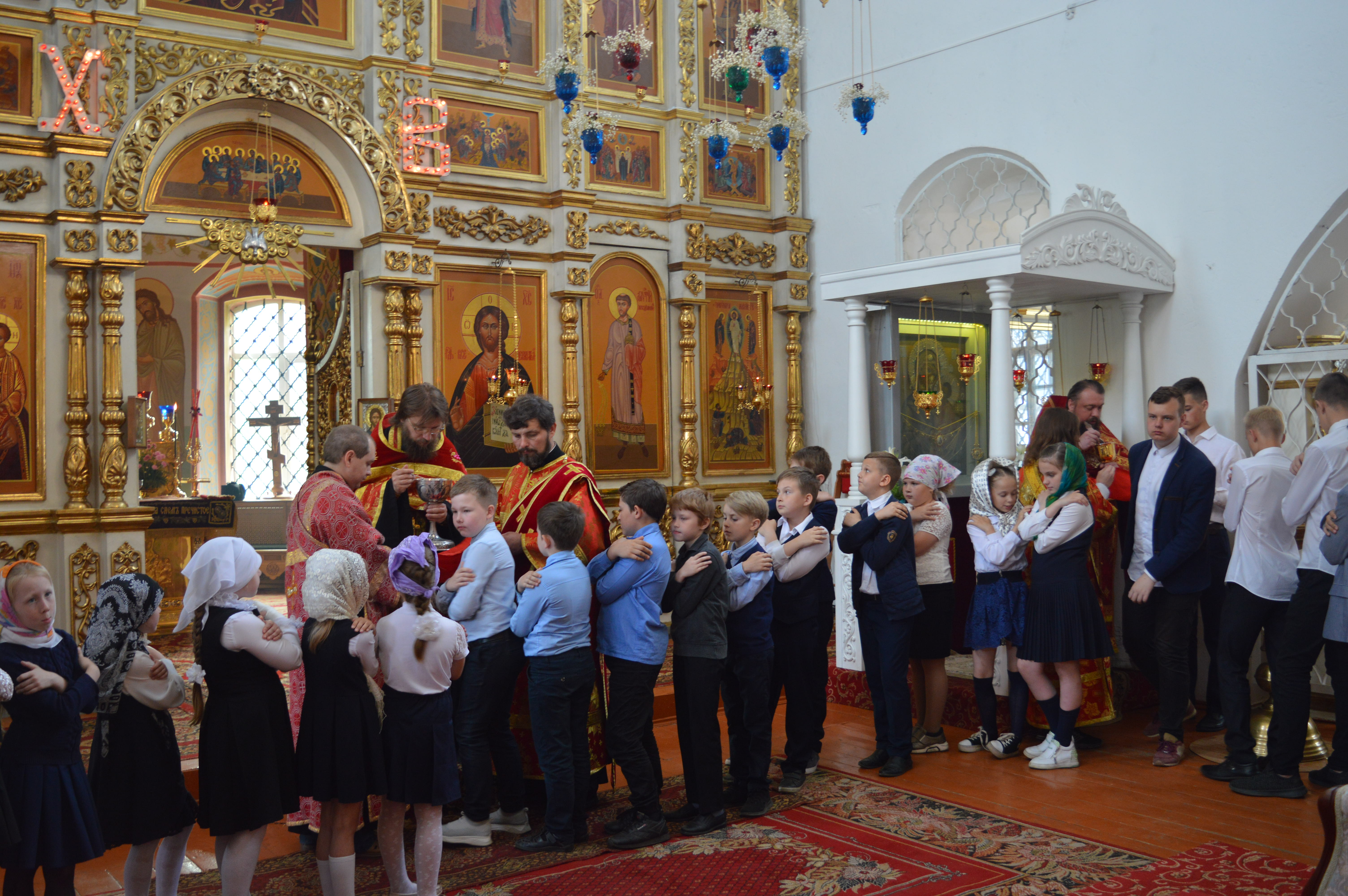 Торжество началось на праздничном богослужении в Спасо-Преображенском соборе. Многие учащиеся гимназии в этот день причастились Святых Христовых Таин.