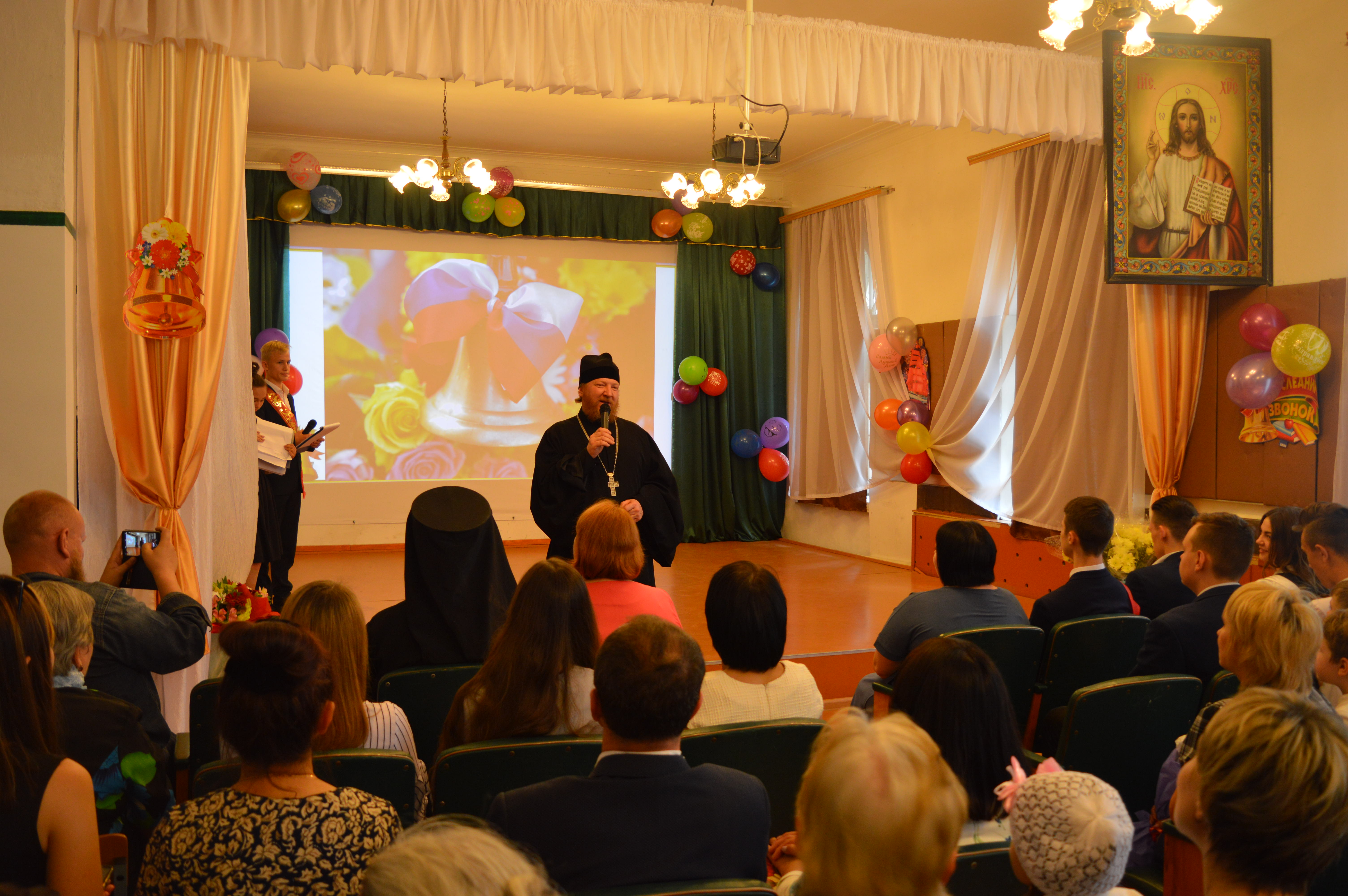 Далее праздник продолжился в актовом зале гимназии. В начале праздничного мероприятия к выпускникам со словами поздравления и напутствия по поводу окончания православной гимназии и получения ими среднего общего образования обратился руководитель Отдела религиозного образования и катехизации протоиерей Михаил Гольцман, отметив, что наряду со светским образованием им посчастливилось получить и образование духовное, что особенно ценно в наши непростые дни. Директор гимназии Марченкова Н.В. зачитала приказ о допуске с государственной итоговой аттестации выпускников девятого и одиннадцатого классов.