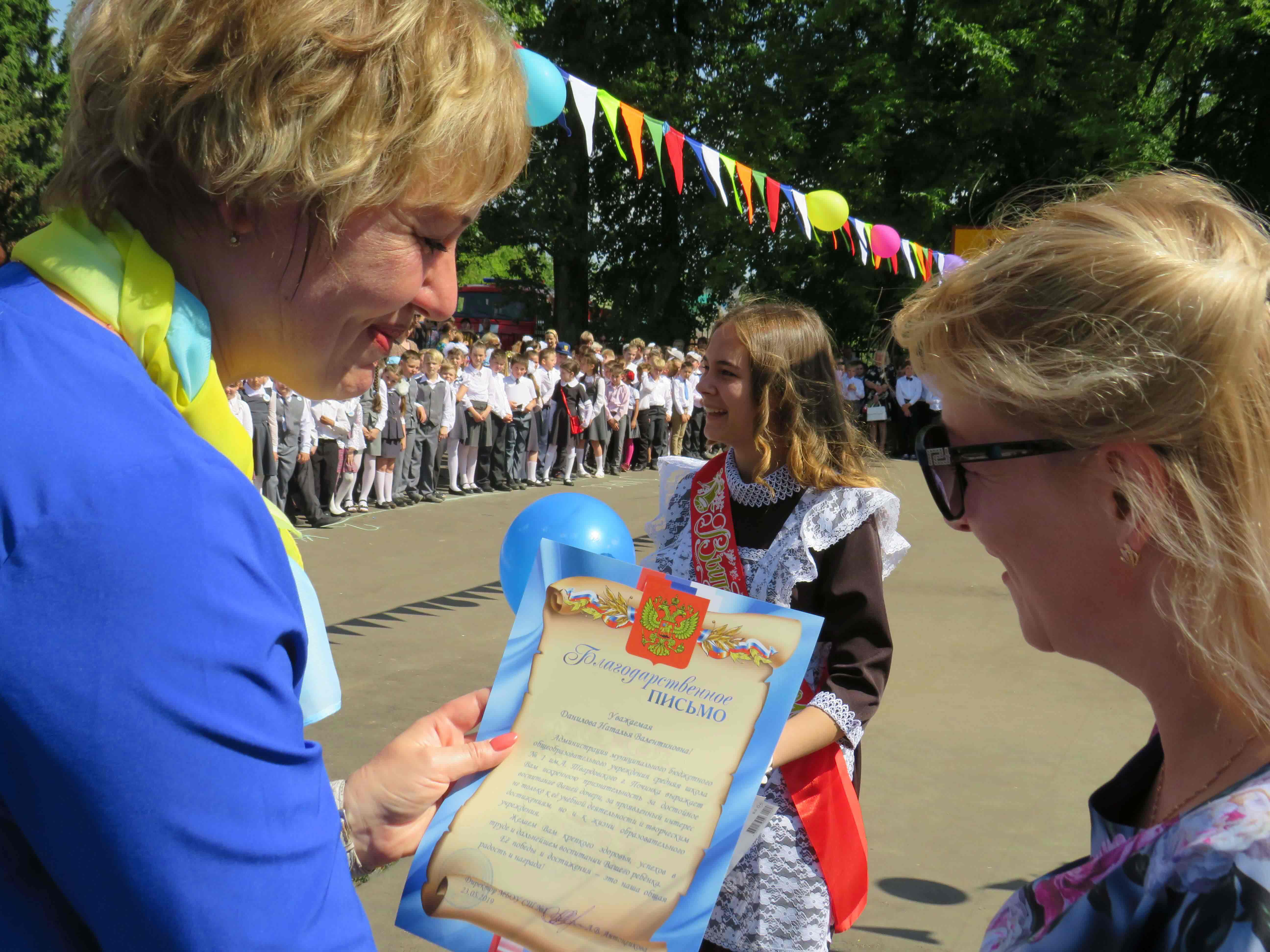 Директор школы Людмила Викторовна Антоненкова в этот день зачитала приказ о допуске к сдаче ЕГЭ и ОГЭ, а также вручила выпускникам грамоты и благодарственные письма за участие и победы в олимпиадах, конкурсах и спортивных соревнованиях.