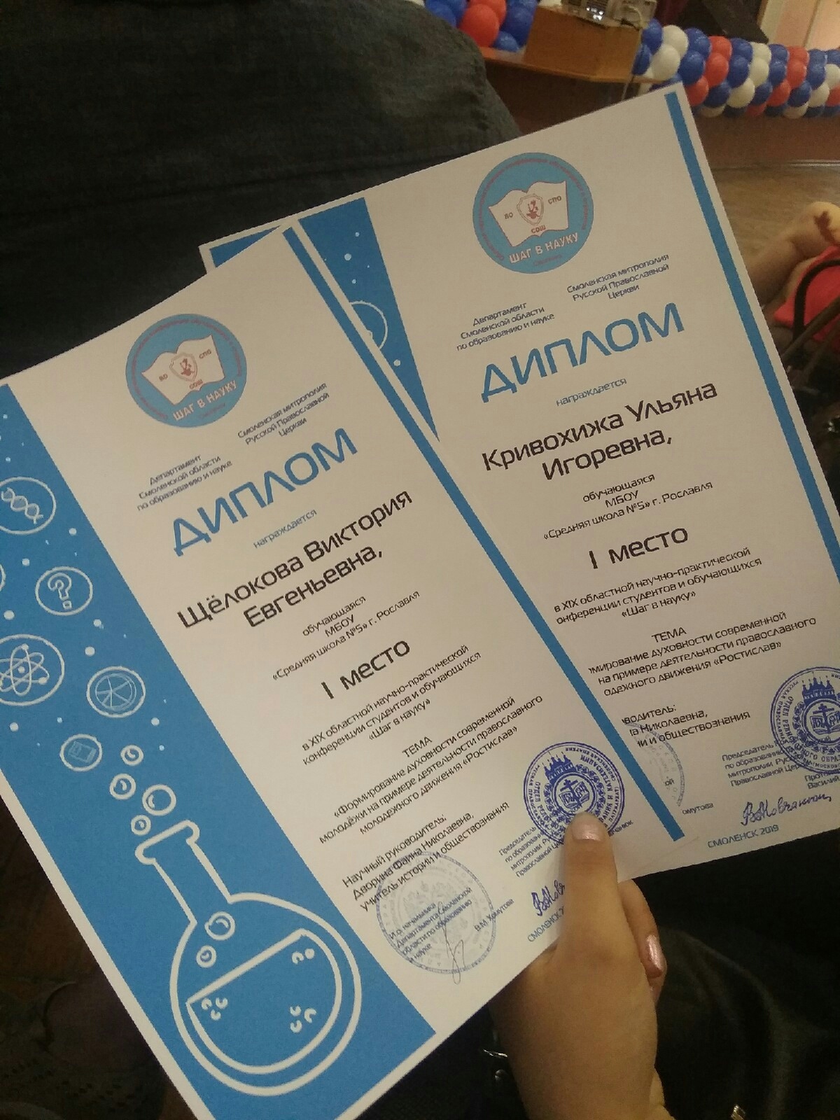 Мероприятия подобного рода проводят с целью выявления одарённой молодёжи, развития интеллектуального потенциала студентов и обучающихся, укрепление связей между образовательными организациями Смоленской области. Участники конференции представляли свои работы по 15 направлениям. Эксперты оценивали их по таким критериям, как актуальность, оригинальность и творческий подход, целостность и логичность изложения, практическая значимость. В общей сложности представили 360 работ. В финал прошли 132 участника. Победителями в своих направлениях стали и ученики Рославльской православной гимназии Гайсенок Ксения и научный руководитель Шипко Ольга Владимировна первое место с темой «Сравнение адсорбционной способности черного активированного угля и белого угля» и Григорьев Антон третье место. Еще одно первое место привезли в Рославль ученицы школы №5 Щёлокова Виктория и Кривохижа Ульяна научный руководитель Дворина Фаина Николаевна с темой «Формирование духовности современной молодежи на примере деятельности православного молодежного движения «Ростислав» . Поздравляем победителей и их педагогов с победой.