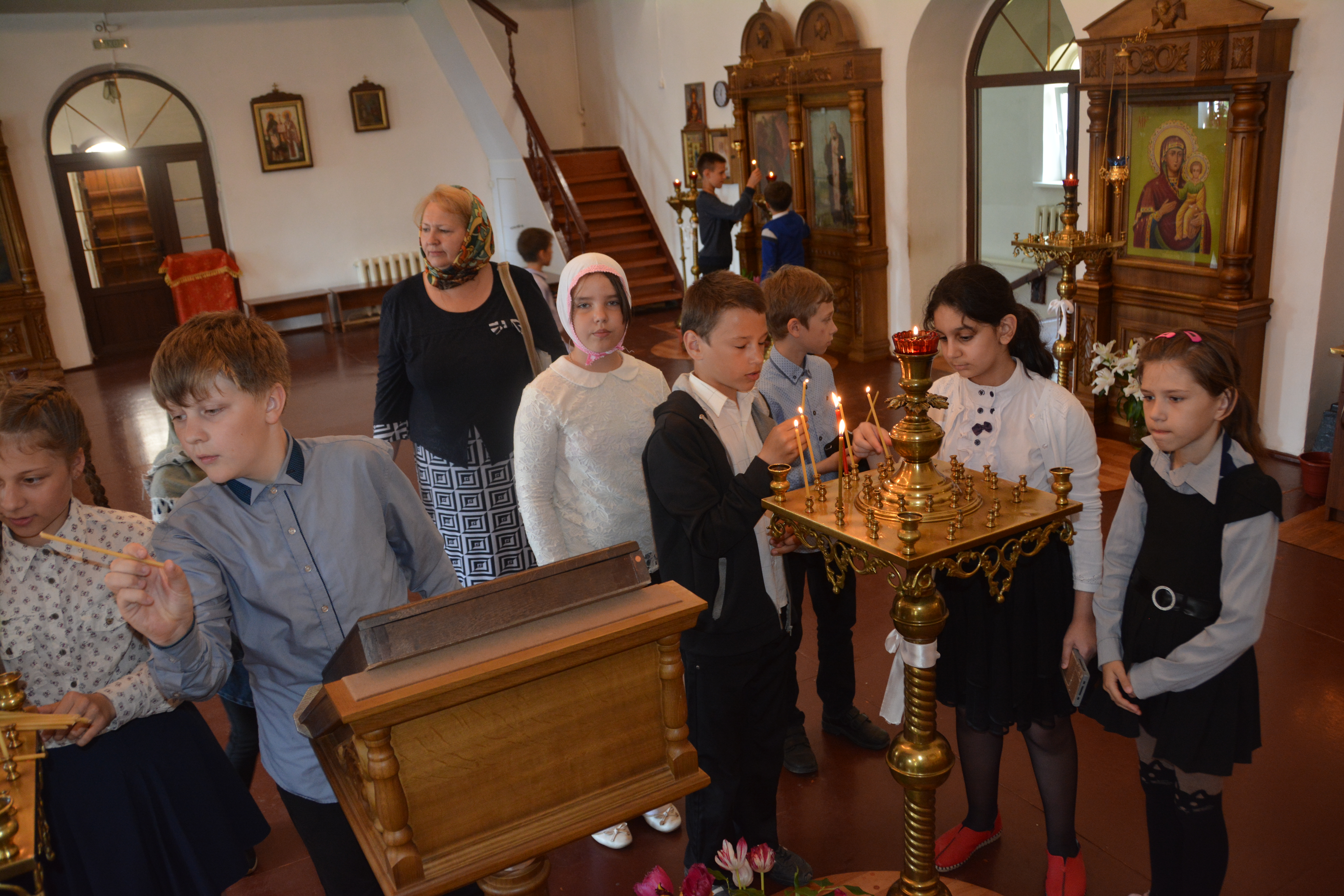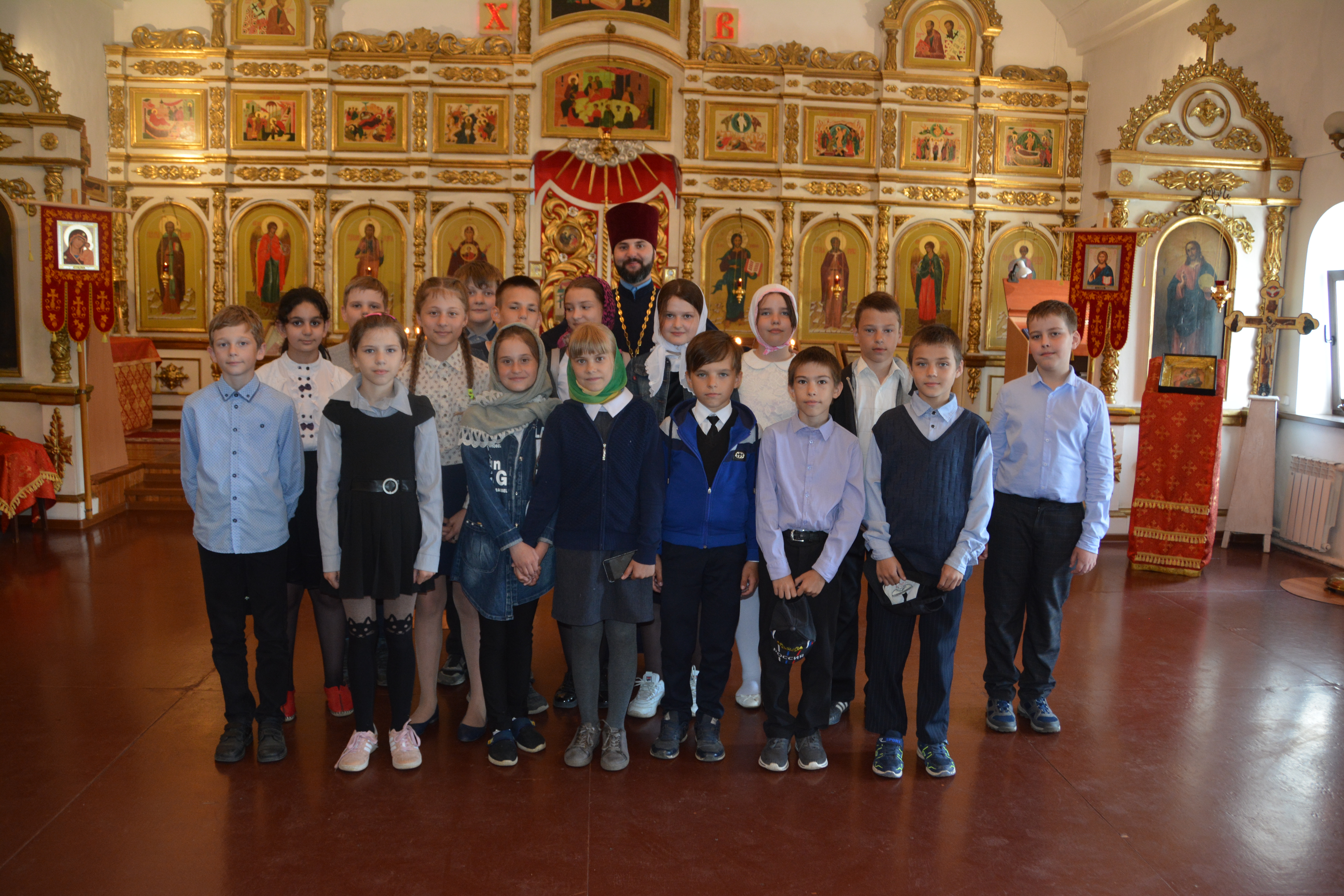 Во время беседы дети смогли узнать историю прихода, познакомились с устройством храма, узнали много нового о церковных традициях, иконах и святынях Православной Церкви. Экскурсия прошла в рамках плановых занятий предмета ОРКСЭ.