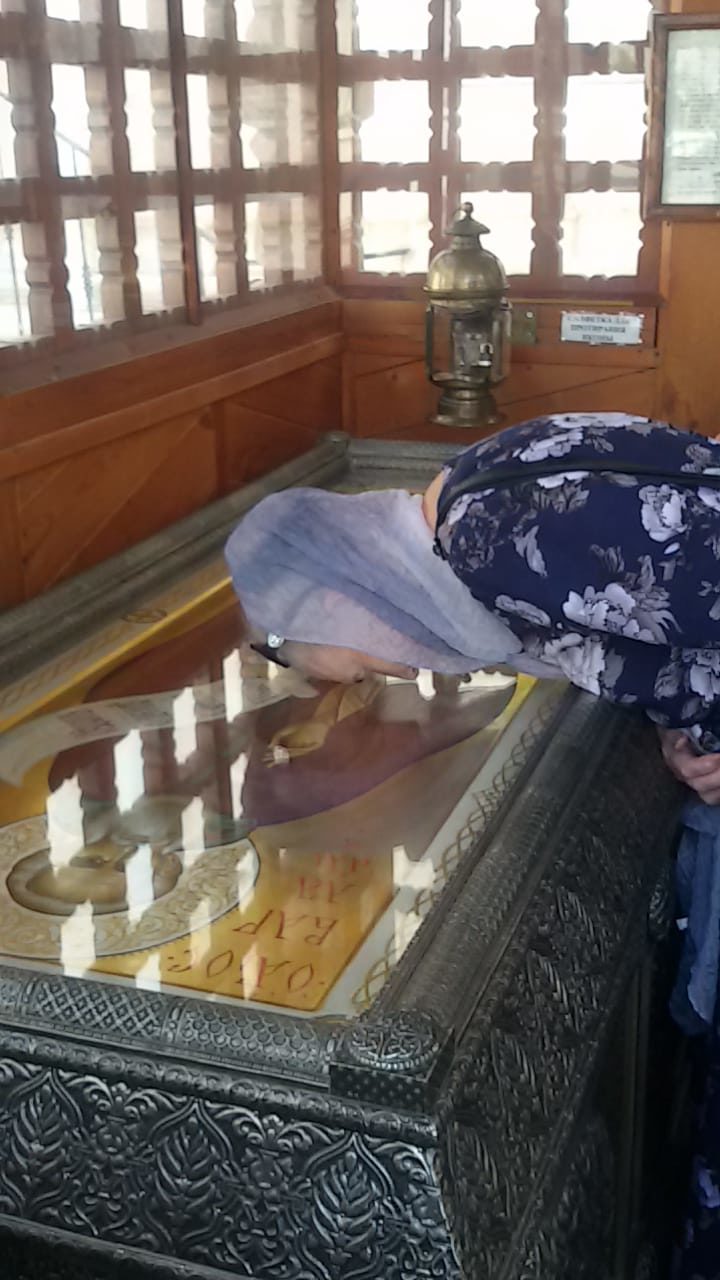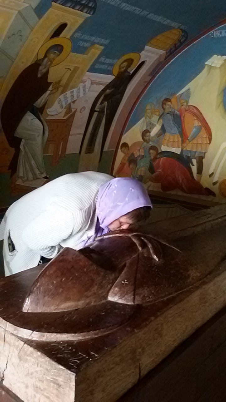 За праздничной Божественной Литургией некоторые исповедовались и причащались Святых Христовых Таин. После Литургии все участники поездки вместе с другими паломниками молились за акафистом, совершаемым ежедневно у чудотворного образа Богоматери с молебном, об избавлении от недугов пианства и наркомании.
