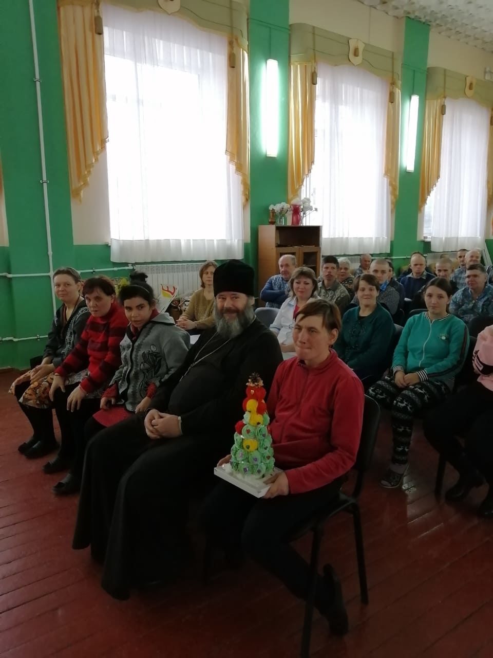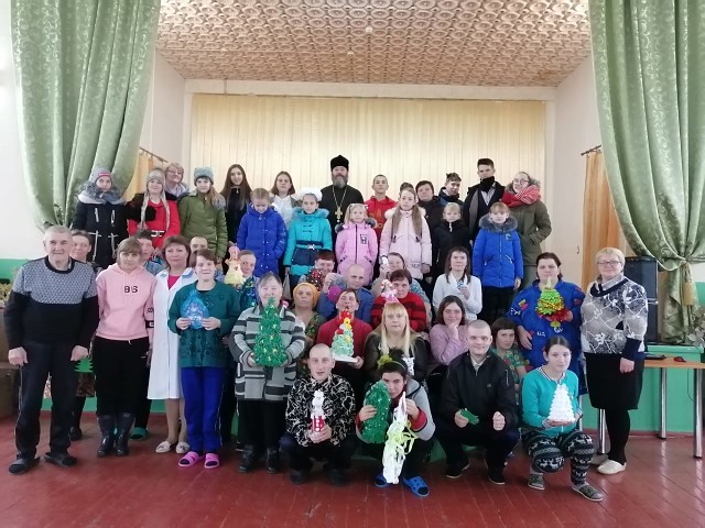 В дни попраздненства Введения в храм Пресвятой Богородицы прихожане храма Вознесения Господня города Рославля совместно с учениками и преподавателями Остерской средней школы посетили социальное учреждение Никольский психоневрологический интернат. Люди с ограниченными возможностями, имели возможность встретиться и пообщаться с детьми, что для них обычно редкость, а вместе с тем и великая радость.