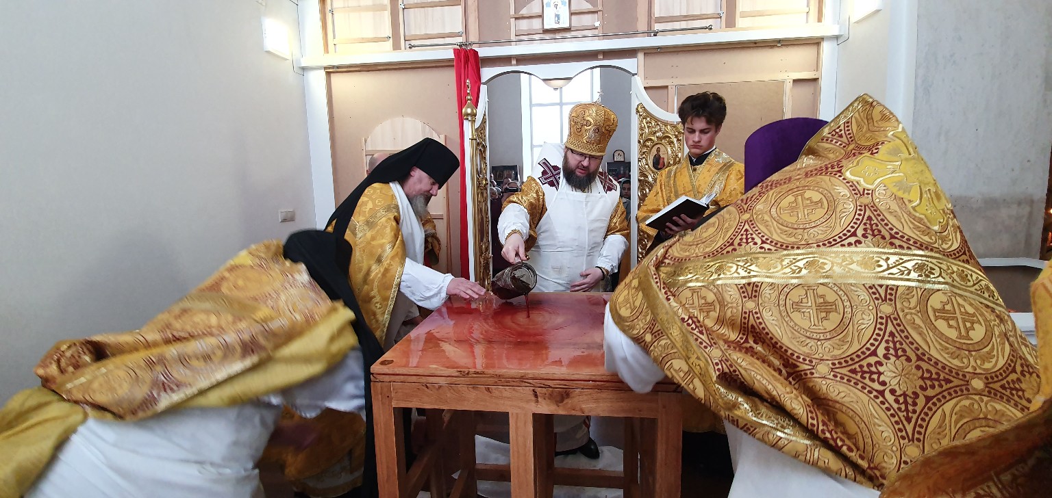 23 февраля 2020 года Его Преосвященство епископ Рославльский и Десногорский Мелетий совершил освящение придела святых мучеников Сергия и Вакха и Божественную литургию в Спасо-Вознесенском храме Спасо-Вознесенского Власиева Архиерейского монастырского подворья села Кузьмичи.