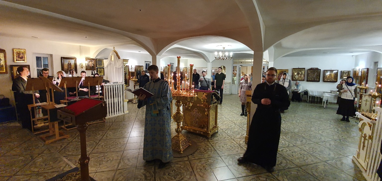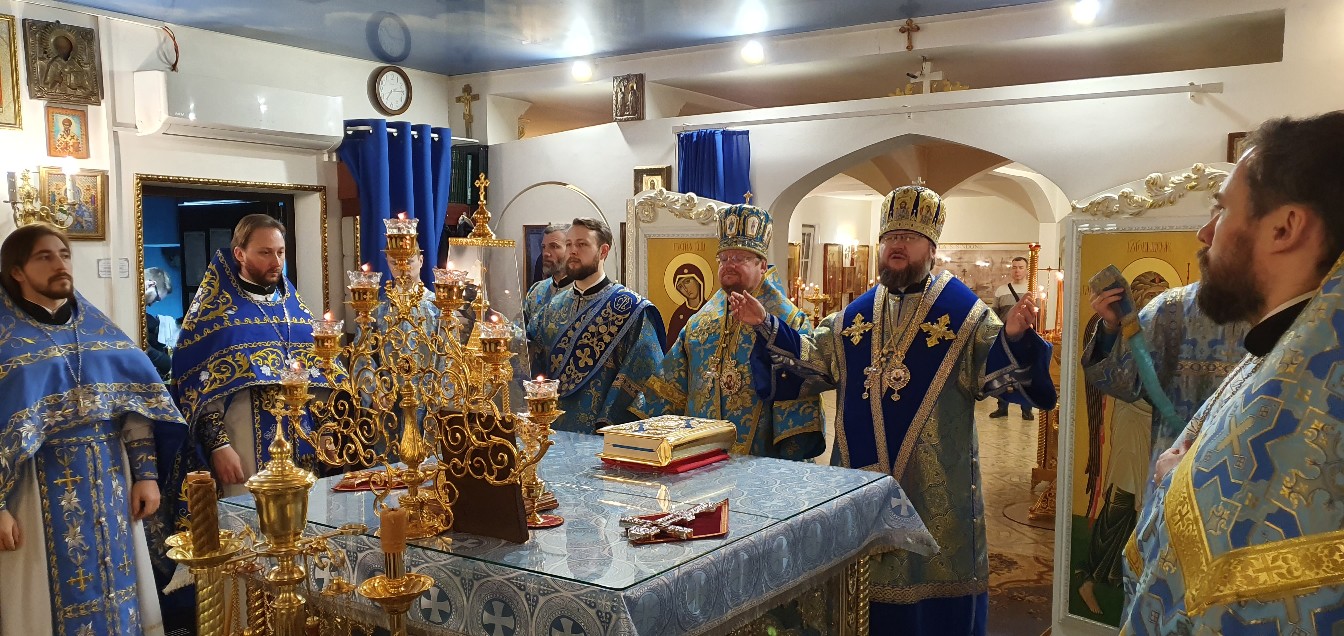 Преосвященный Мелетий, епископ Рославльский и Десногорский в сослужении с Преосвященным Игнатием, епископом Выборгским и Приозерским совершили Божественную Литургию в храме иконы Божией Матери «Отрада и Утешение» г. Кудрово.