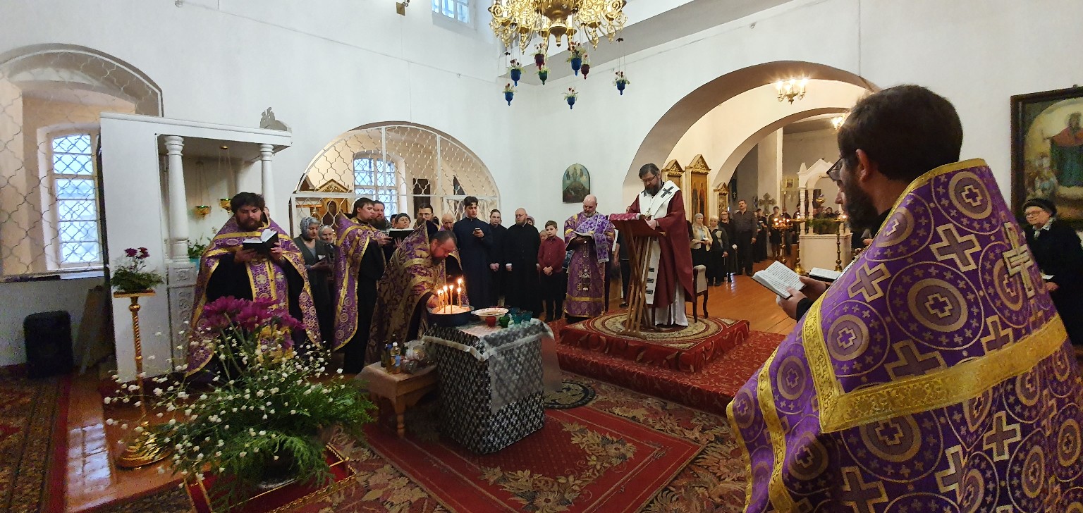 Его Преосвященству сослужило городское духовенство.