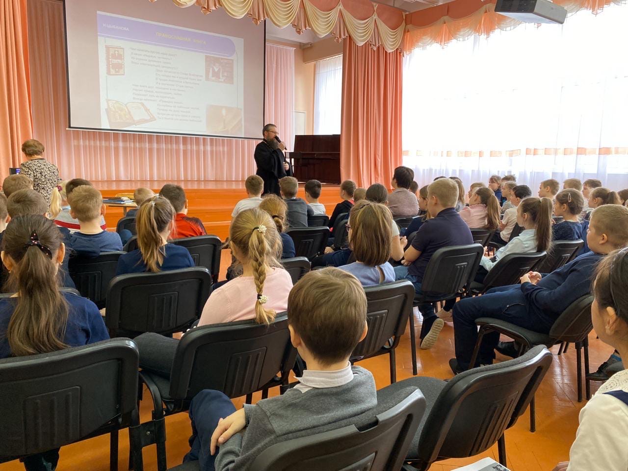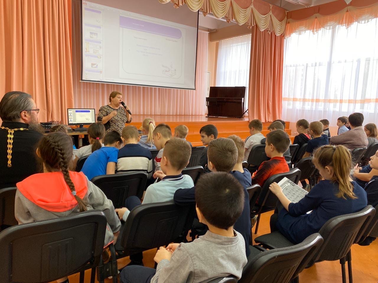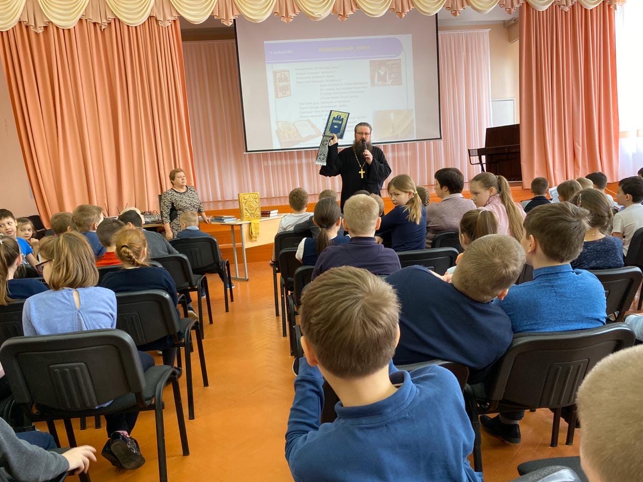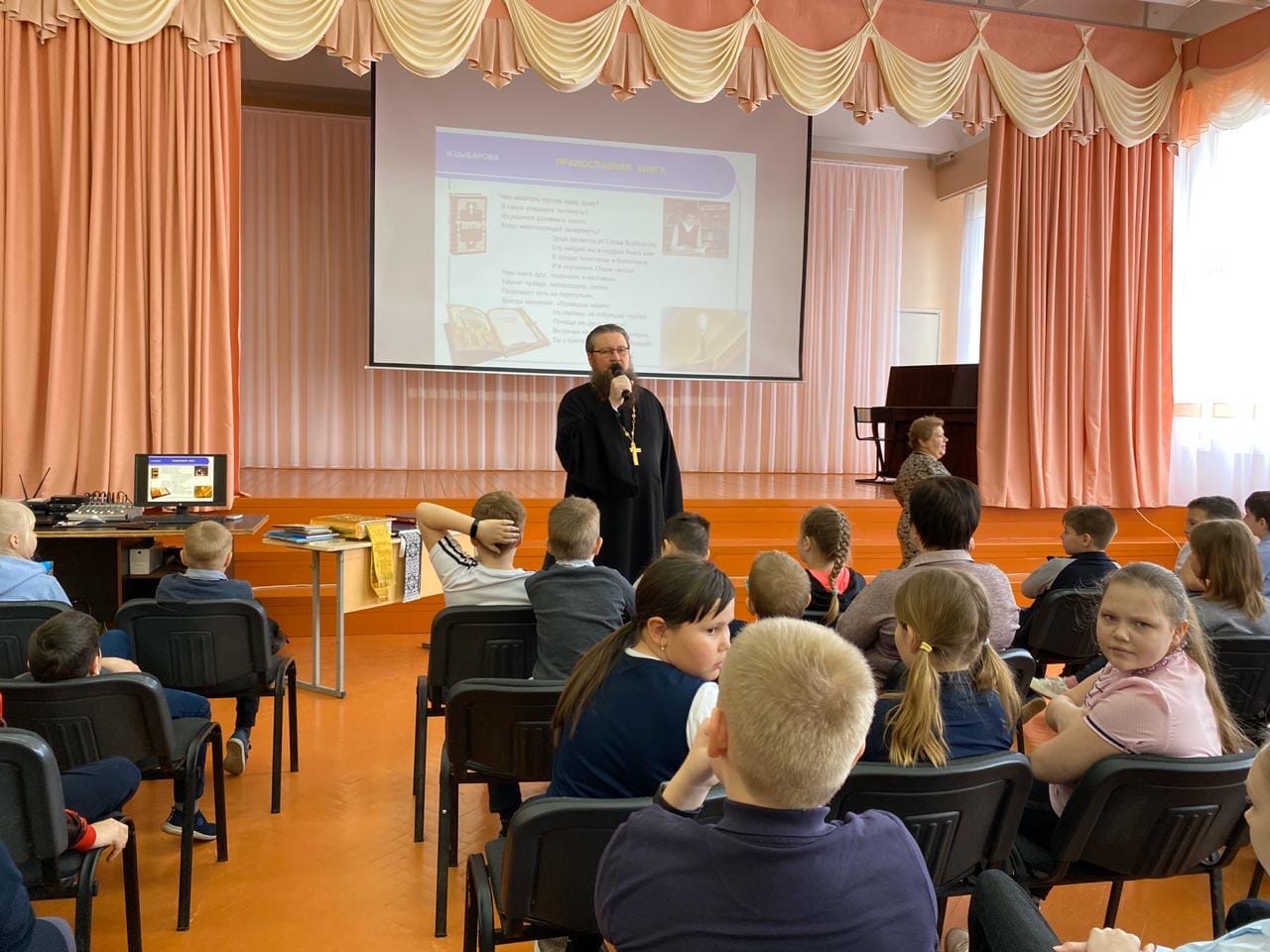 13 марта 2020 г. в средней школе №4 г. Десногорска иеромонах Игнатий (Гайлов), настоятель Подворья Спасо-Преображенского мужского монастыря в честь Святителя Стефана Великопермского