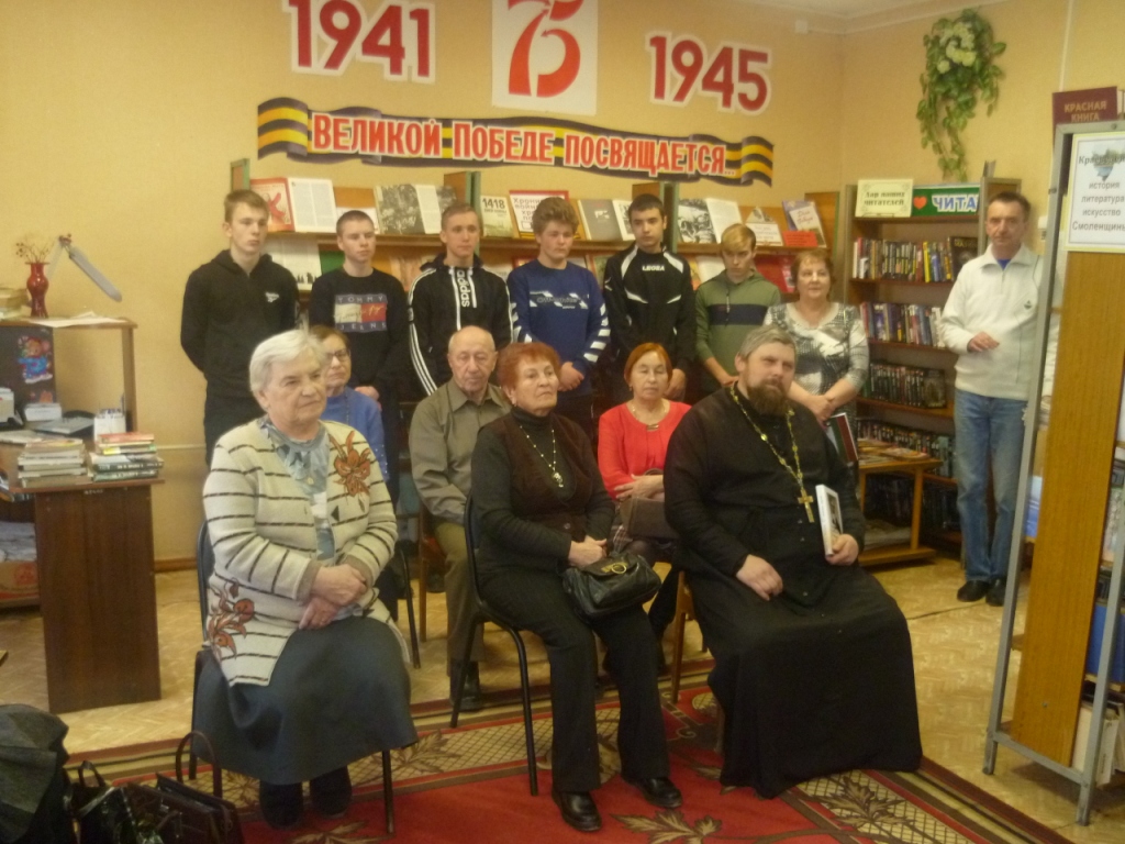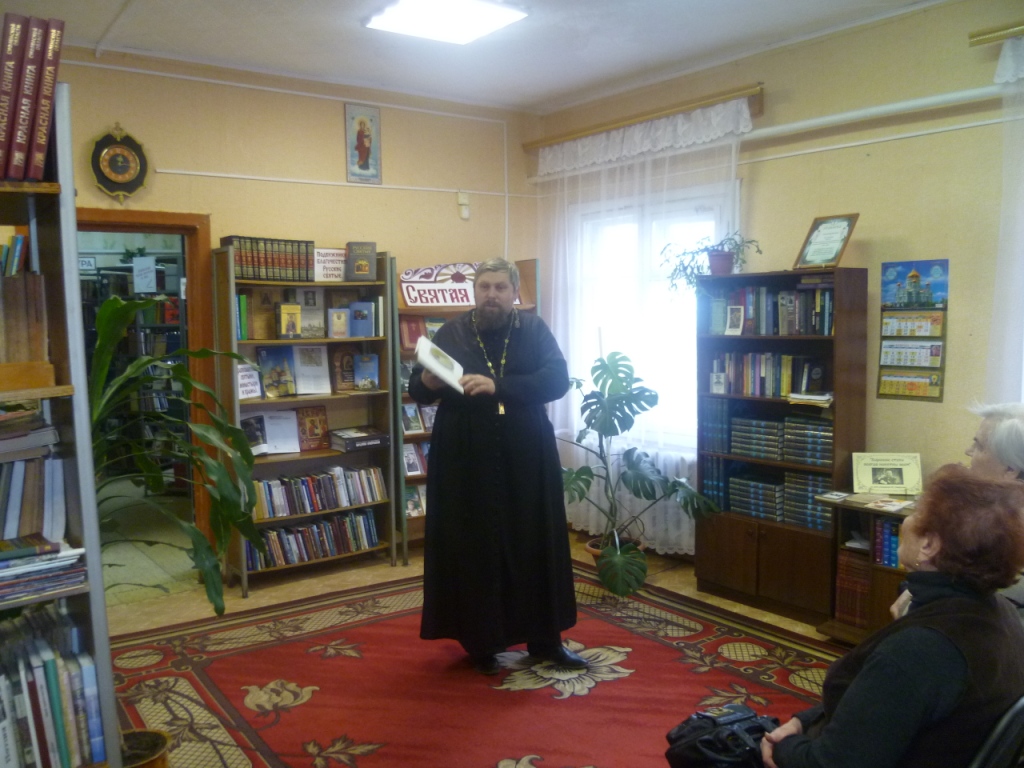 Частый гость и непосредственный участник проводимых мероприятий, а также даритель книг для наших читателей — отец Сергий – настоятель храма святого мученика Вонифатия д. Лосня.