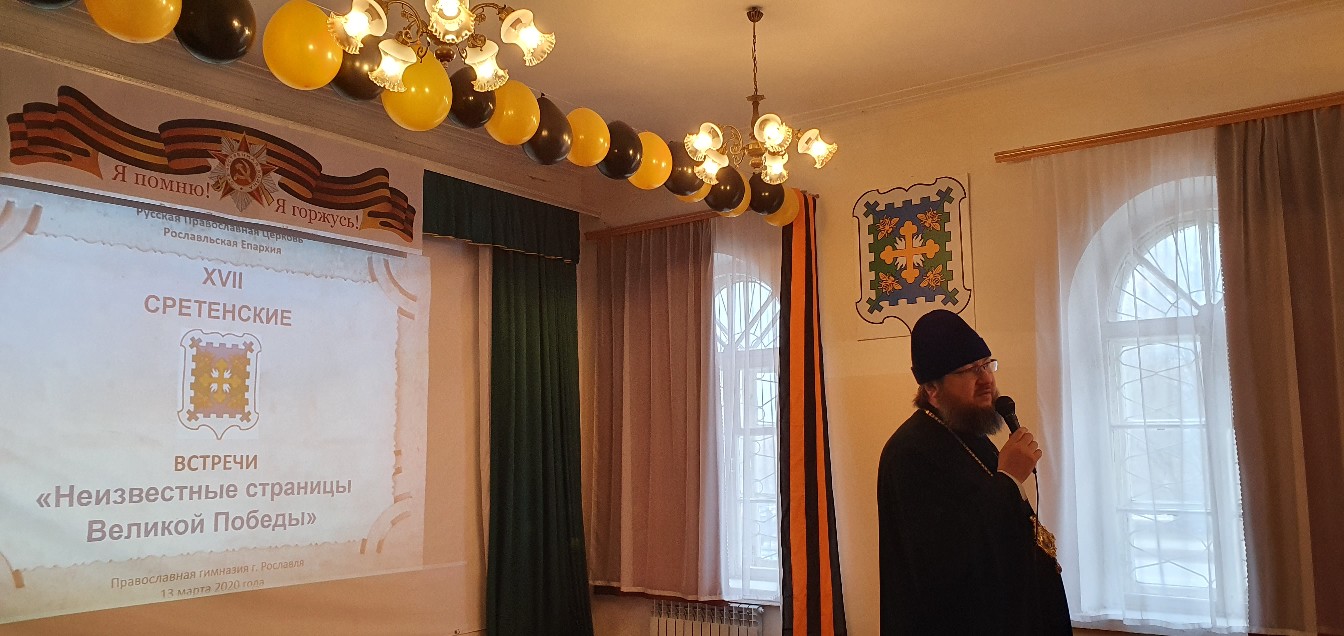 13 марта 2020 года по благословению епископа Рославльского и Десногорского Мелетия в Православной гимназии г. Рославля состоялись XVII Сретенские встречи «Неизвестные страницы Великой Победы».