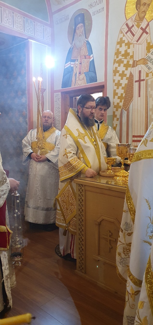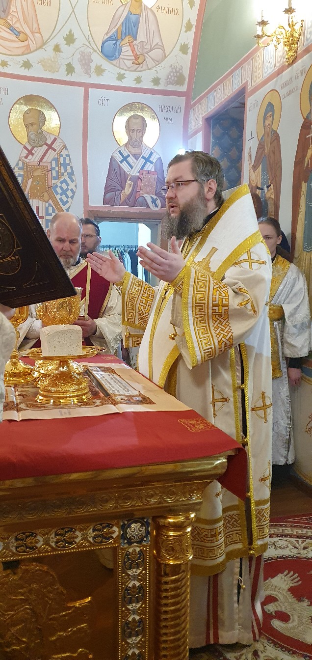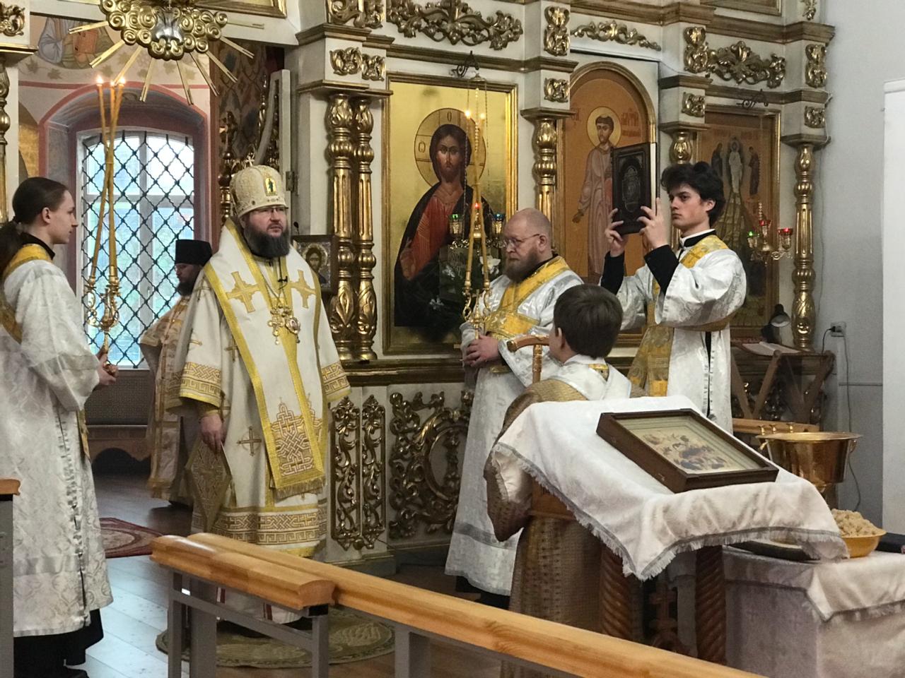 После сугубой ектении Преосвященный Мелетий вознес молитвы о мире на Украине и об избавлении от коронавируса.