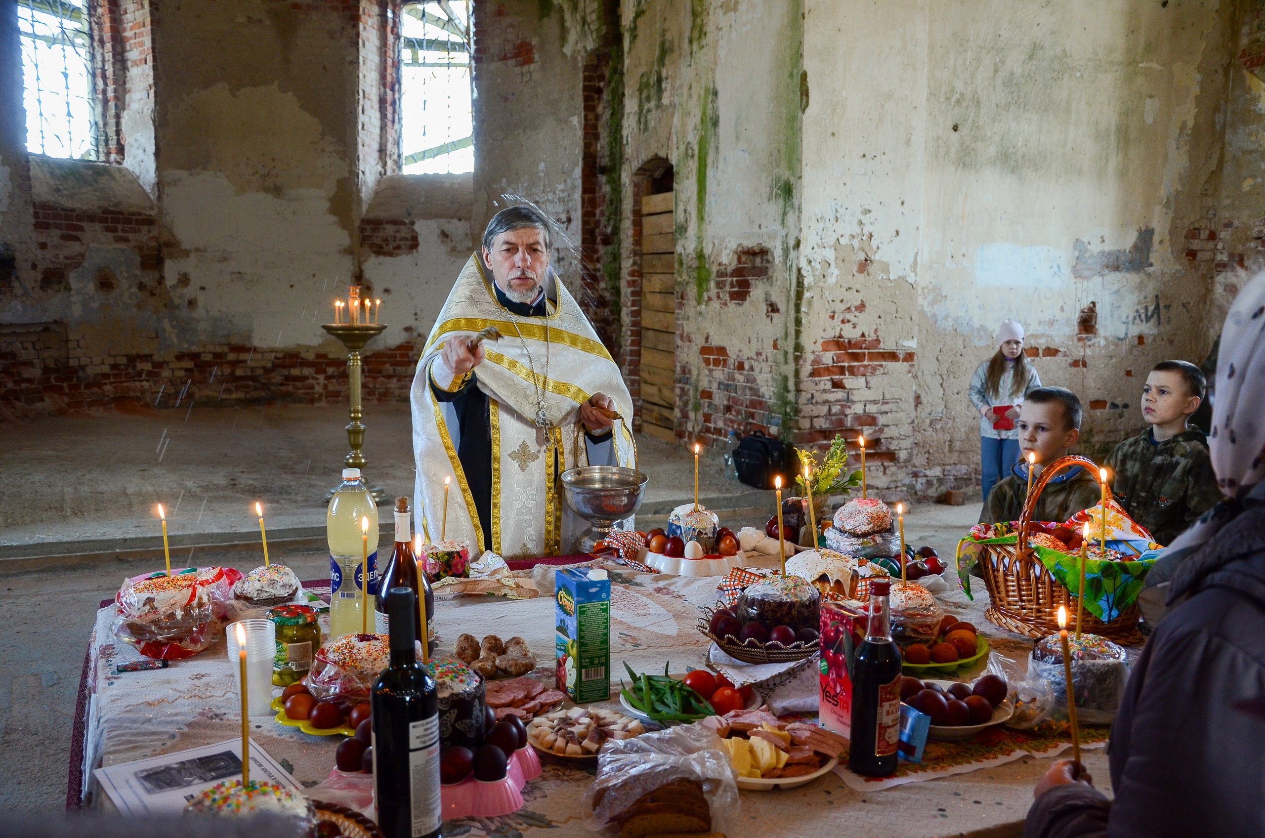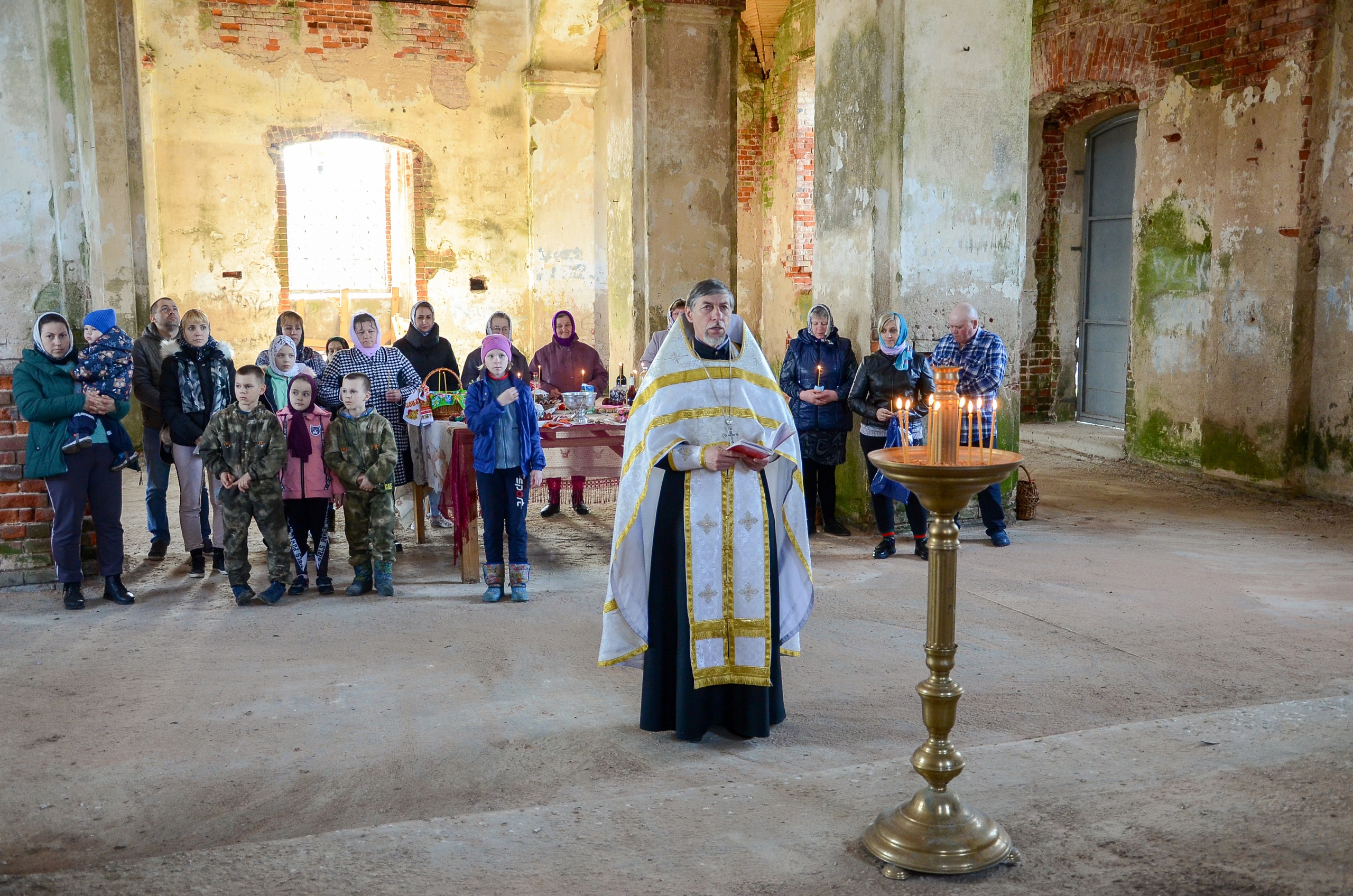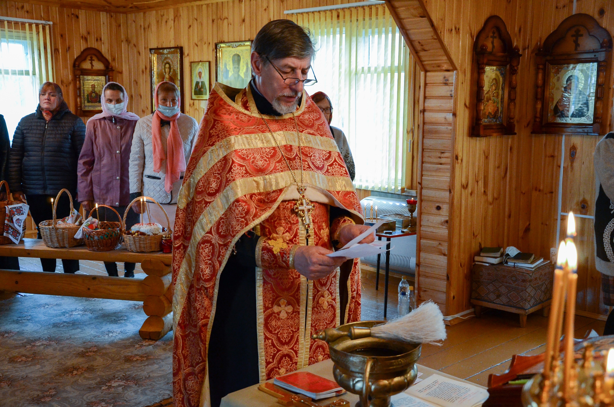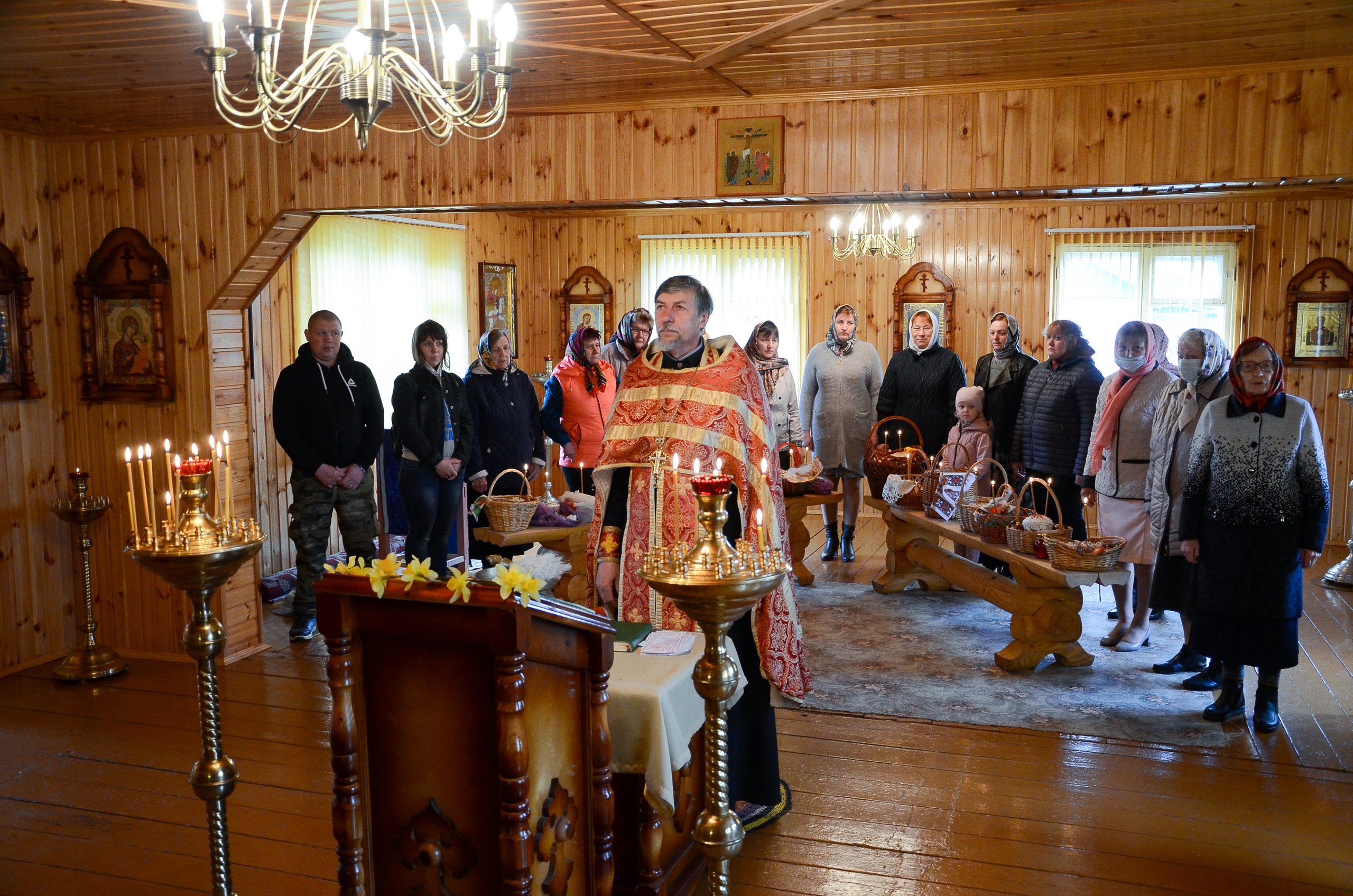 1 мая 2021 года, в Великую Субботу, в преддверии празднования Пасхи Христовой, в храме Успения Пресвятой Богородицы деревни Зарево Хиславичского района освятили пасхальную трапезу.