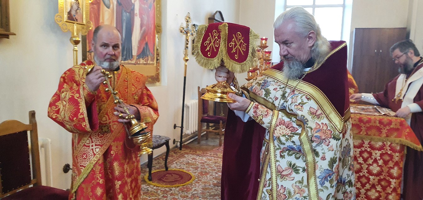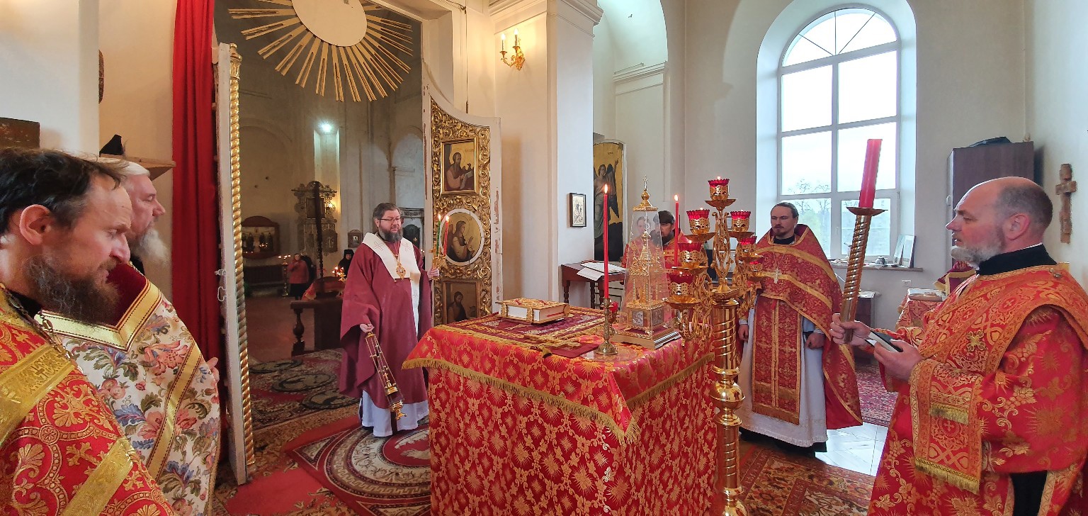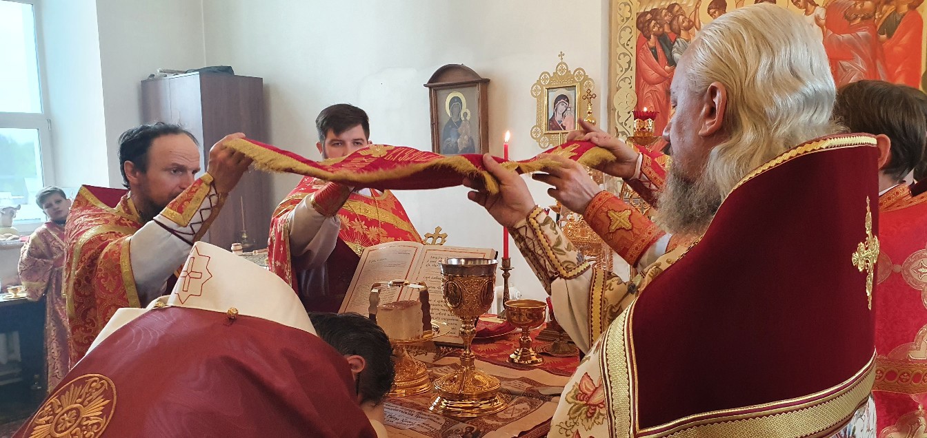 После сугубой ектении Преосвященный Мелетий вознес молитвы о мире на Украине и об избавлении от коронавируса.